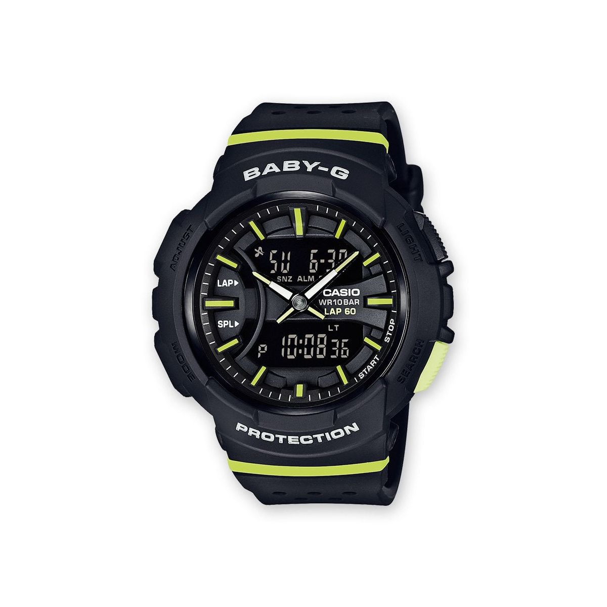 Casio Baby-G / orologio unisex / quadrante nero / cassa resina / cinturino resina nera e verde