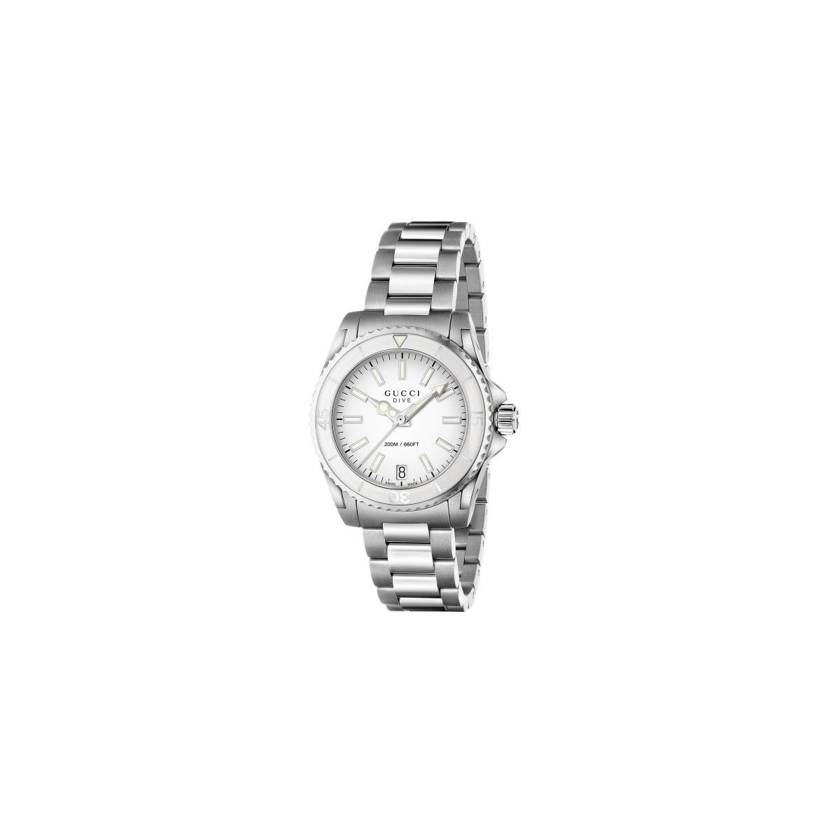 Gucci Dive / orologio donna / quadrante bianco laccato / cassa e bracciale acciaio