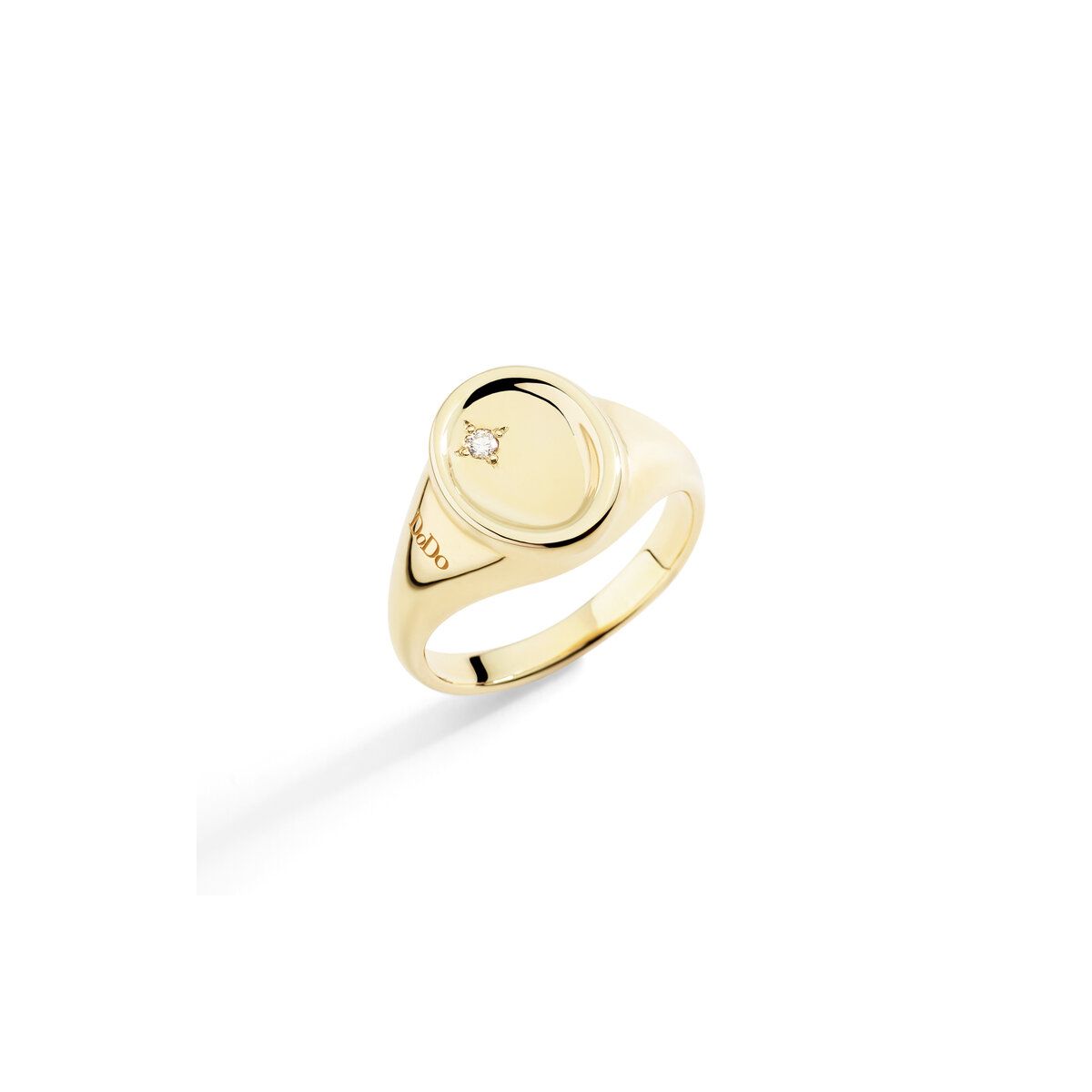 DoDo / anello sigillo / oro giallo 9 kt e diamante bianco
