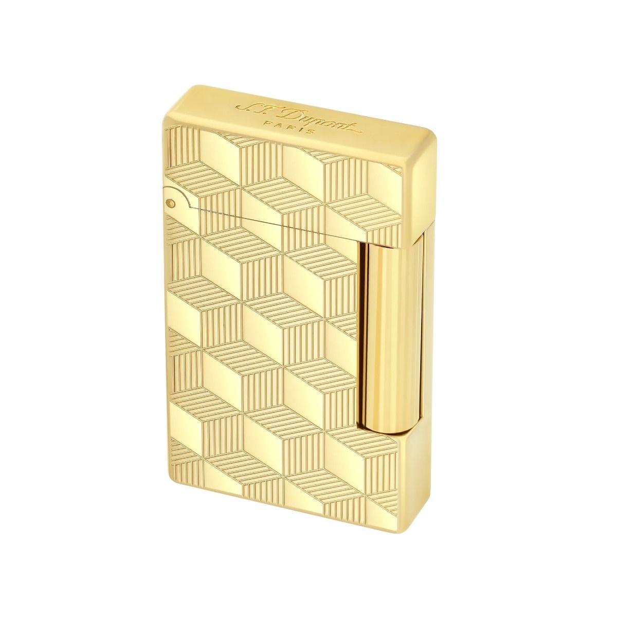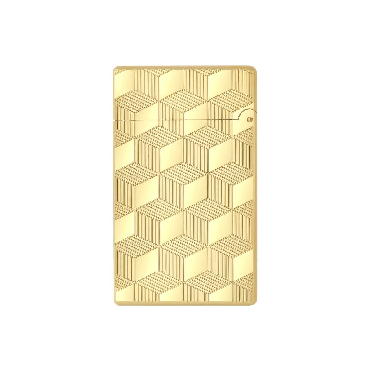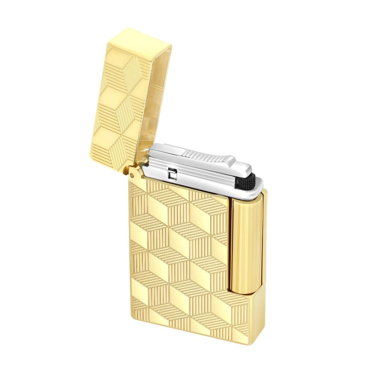 Accendino Initial, decoro Guilloche cube, finiture dorate.