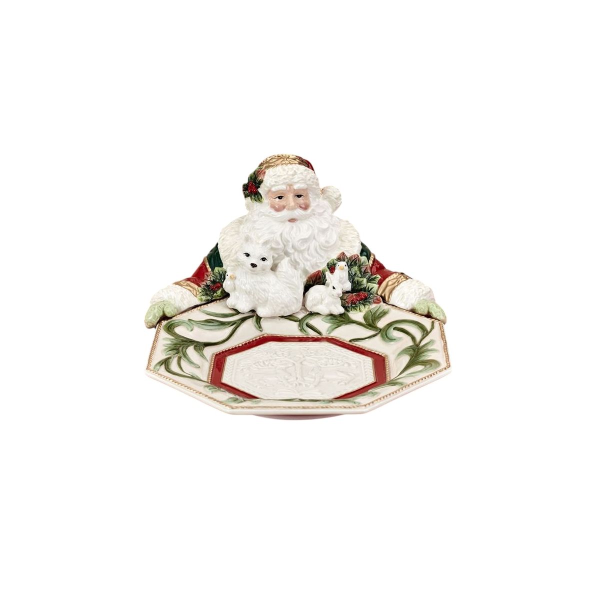 Fitz and Floyd / Woodland Holiday / Centrotavola Babbo Natale / ceramica dipinta a mano