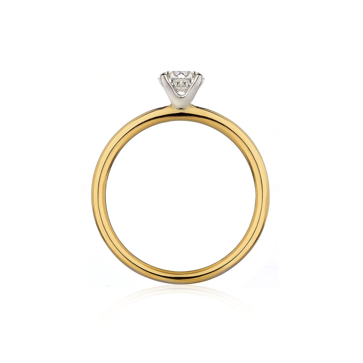 Solitario in oro giallo 18 carati e griffe in oro bianco con diamante centrale taglio brillante.