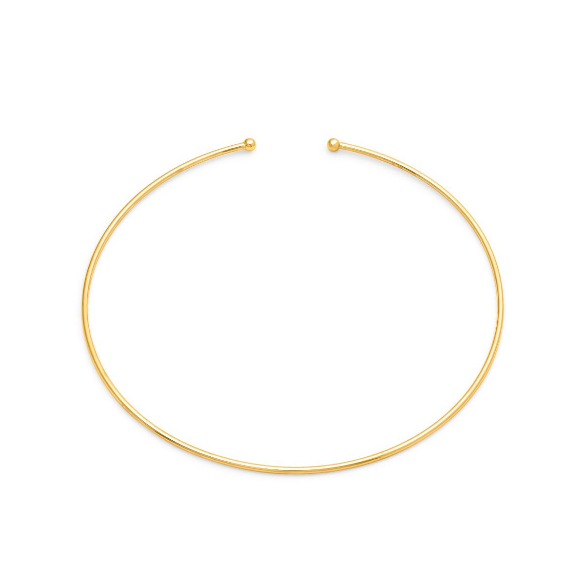 Una leggerissima collana in argento dorato essenziale e contemporanea, che celebra la purezza della forma circolare e la semplicità delle finiture. Il dettaglio delle due sferette alle estremità crea un gioco di equilibrio ed eleganza. Interamente fatta a mano in azienda.