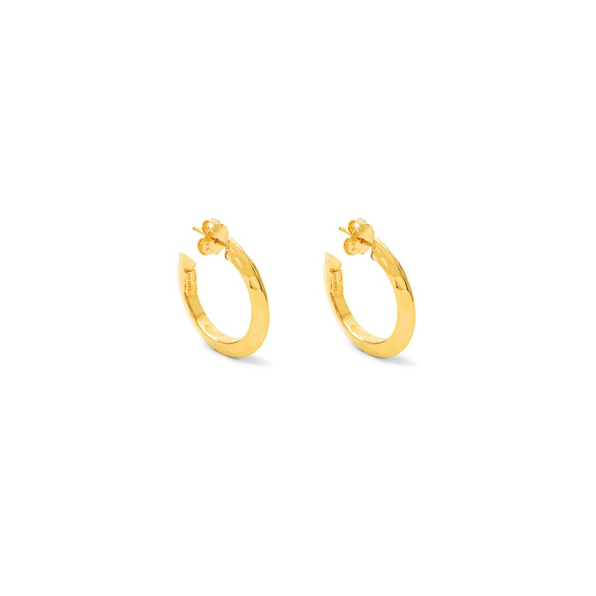 Giovanni Raspini esprime con classe l'abilità di interpretare il design contemporaneo attraverso i gioielli. Negli orecchini a cerchio Blade, in argento dorato, la forma perfetta e la texture martellata regalano una lucentezza straordinaria.