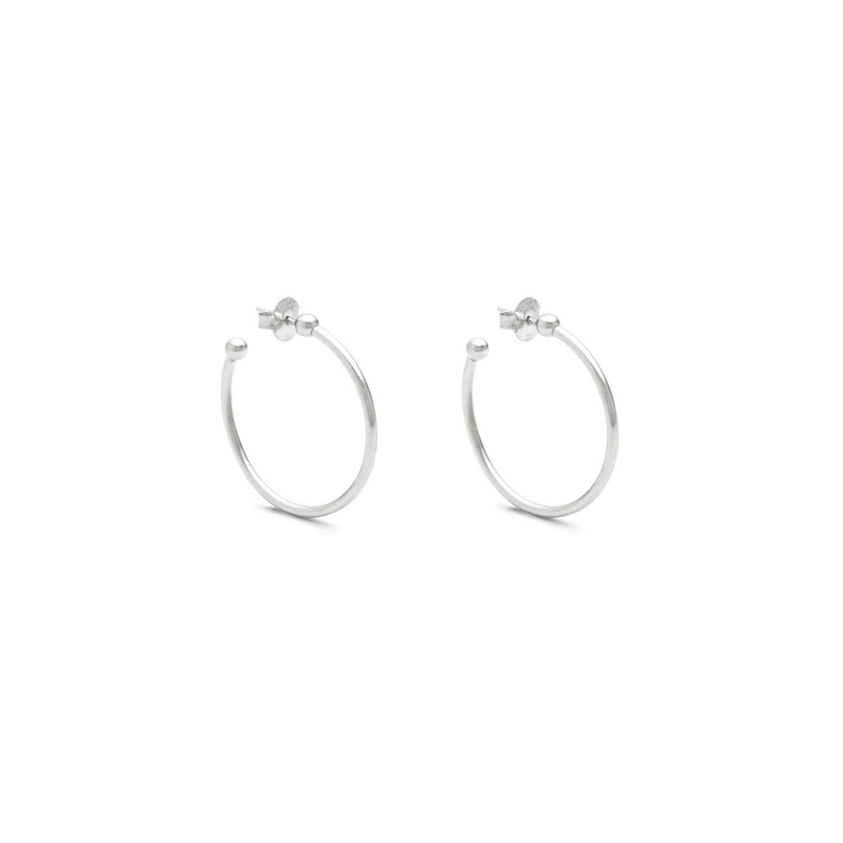 Dal design moderno e senza tempo, questi orecchini in argento celebrano la purezza del cerchio e la raffinatezza dei dettagli artigianali. Le due sferette alle estremità creano un gioco di equilibrio ed eleganza. Interamente fatti a mano in azienda.