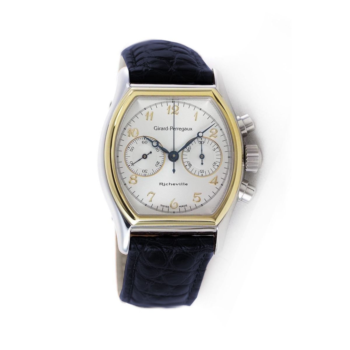 Girard Perregaux Richeville / orologio uomo / quadrante bianco / cassa acciaio e oro / cinturino pelle blu