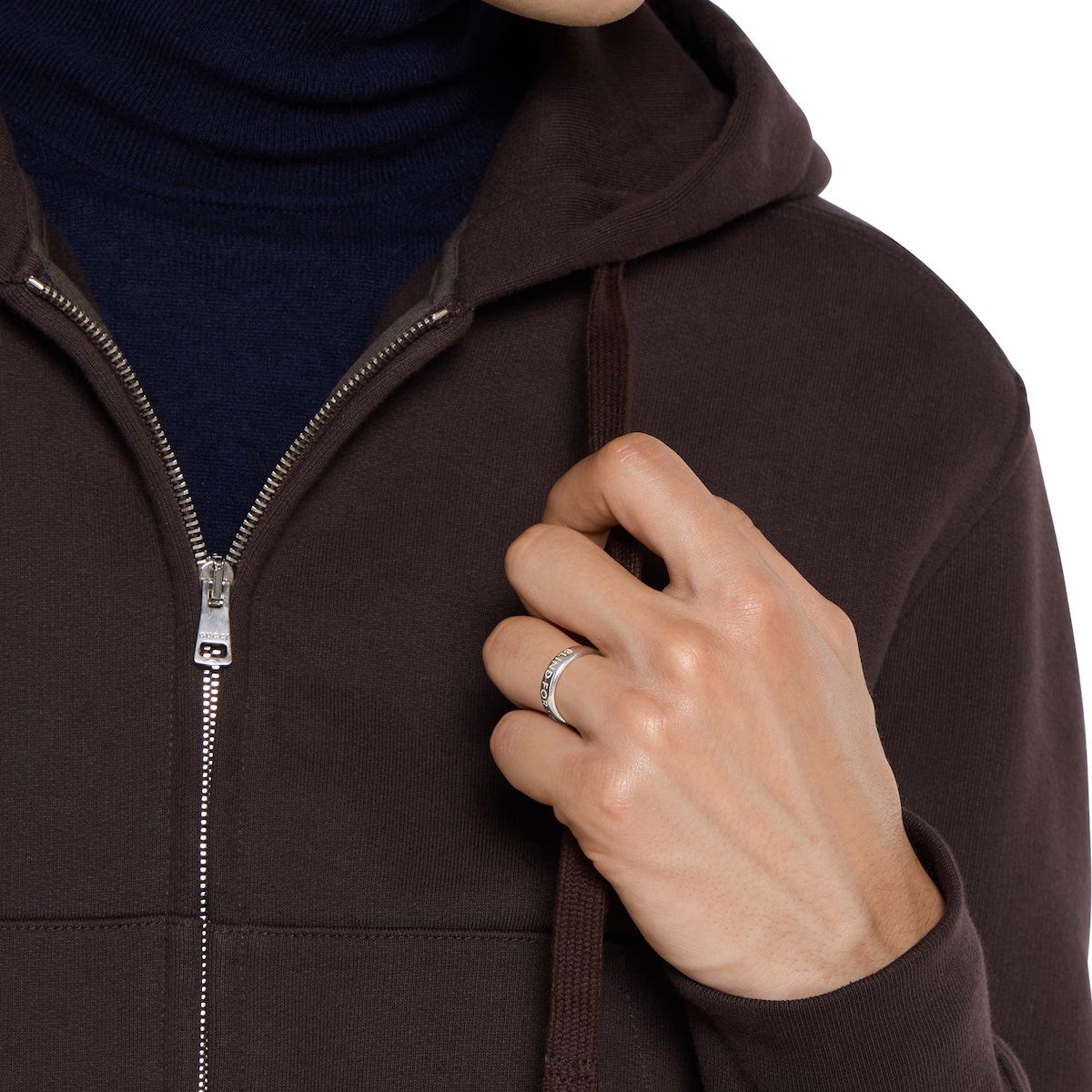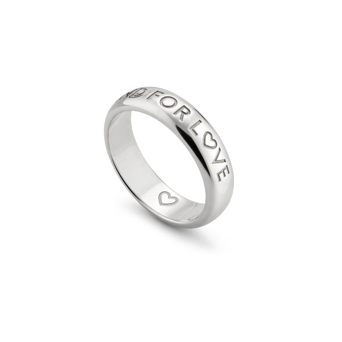 La collezione di gioielli in argento della Maison continua a reinterpretare i motivi emblematici con materiali pregiati, una lavorazione artigianale elaborata e un tocco raffinato, come nel caso di questo anello Blind For Love impreziosito da un'incisione.