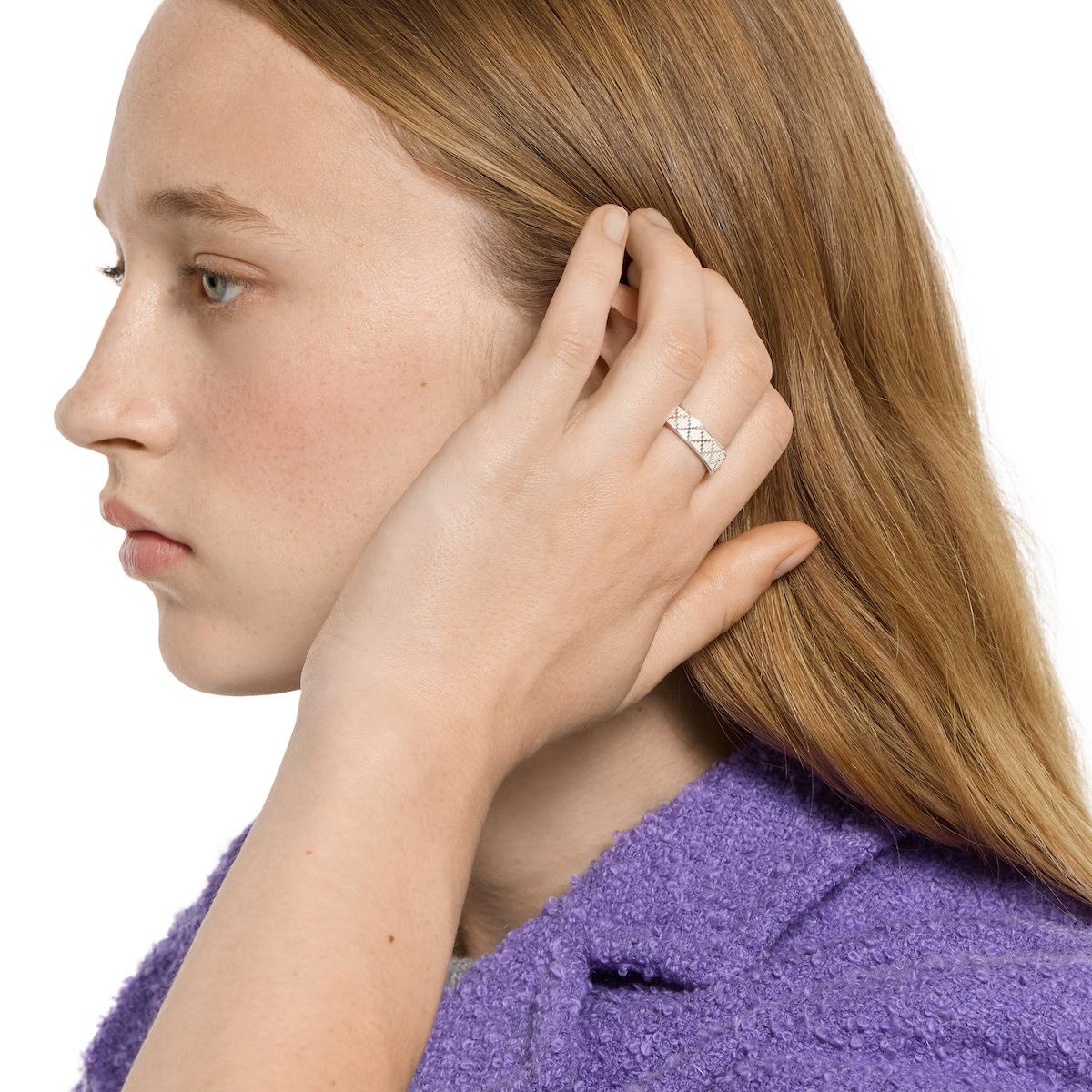 La linea Gucci Diamante trae ispirazione dagli archivi della Maison, in particolare dei primi anni 2000, epoca in cui il motivo "Diamante" caratteristico degli articoli in pelle si rinnova e si trasforma per adornare gioielli e accessori. Per la collezione donna Autunno Inverno 2025, il motivo è stato reinterpretato in una nuova chiave e viene riproposto con un design contemporaneo che richiama le sfaccettature di questa pietra preziosa, tenace e difficile da scalfire.