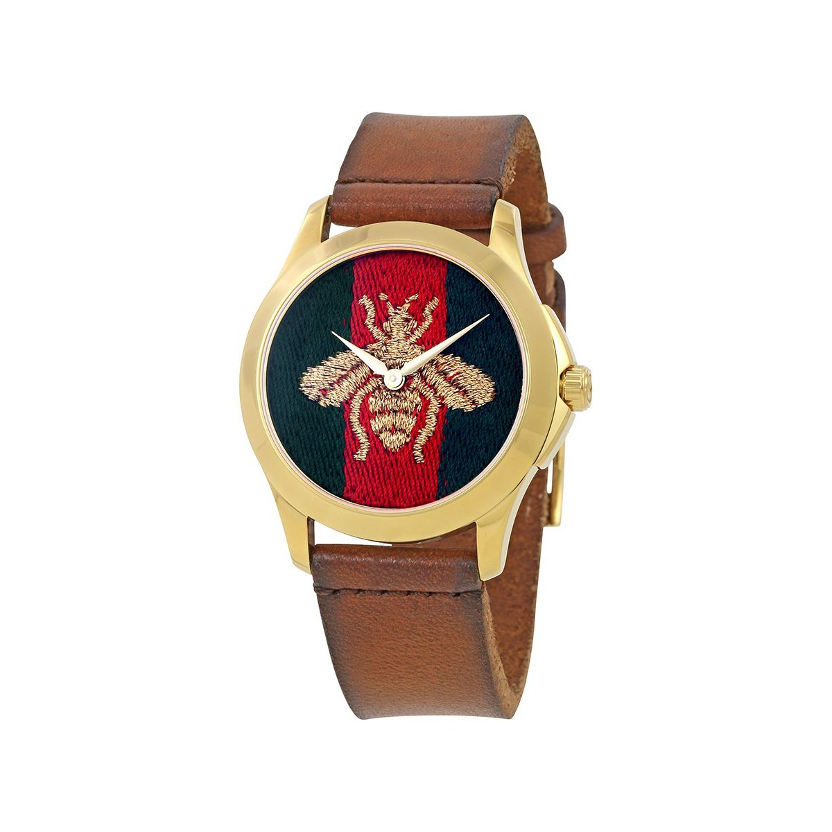 L’orologio Gucci G-Timeless Le Marchè des Merveilles è dotato di un movimento Swiss made al quarzo. La cassa è in acciaio e PVD dorato. Il quadrante rosso e verde presenta le lancette delle ore e dei minuti dorate, che si stagliano sul disegno di un'ape dorata.