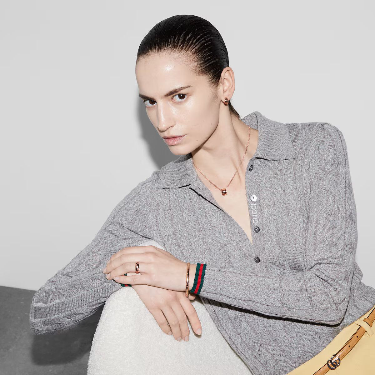 Per la collezione Autunno Inverno 2024, i gioielli Icon presentano un nuovo motivo GG cut-out sulle silhouette arrotondate. Qui, il caratteristico motivo della Maison impreziosisce il pendente di questa collana in oro rosa 18 carati. Le collane sono regolabili per una pratica vestibilità.
