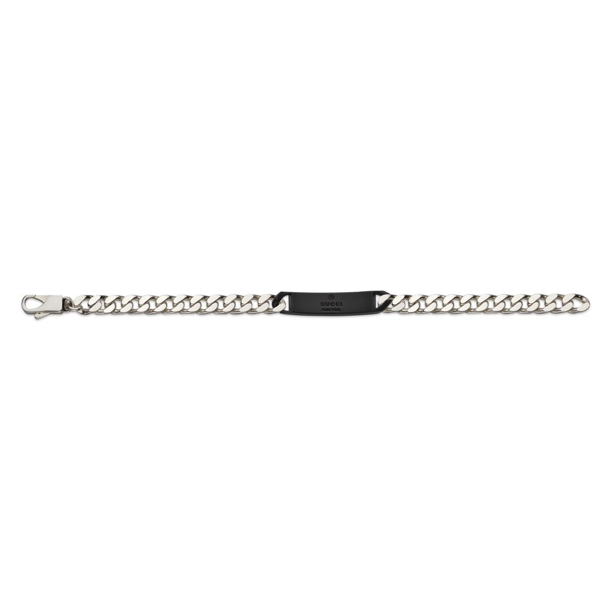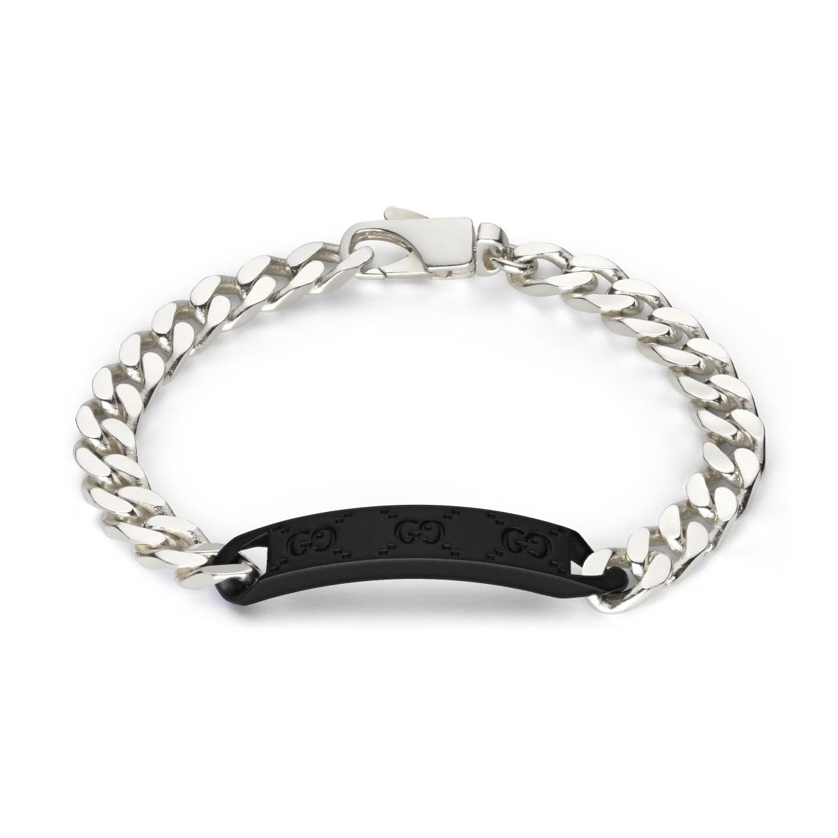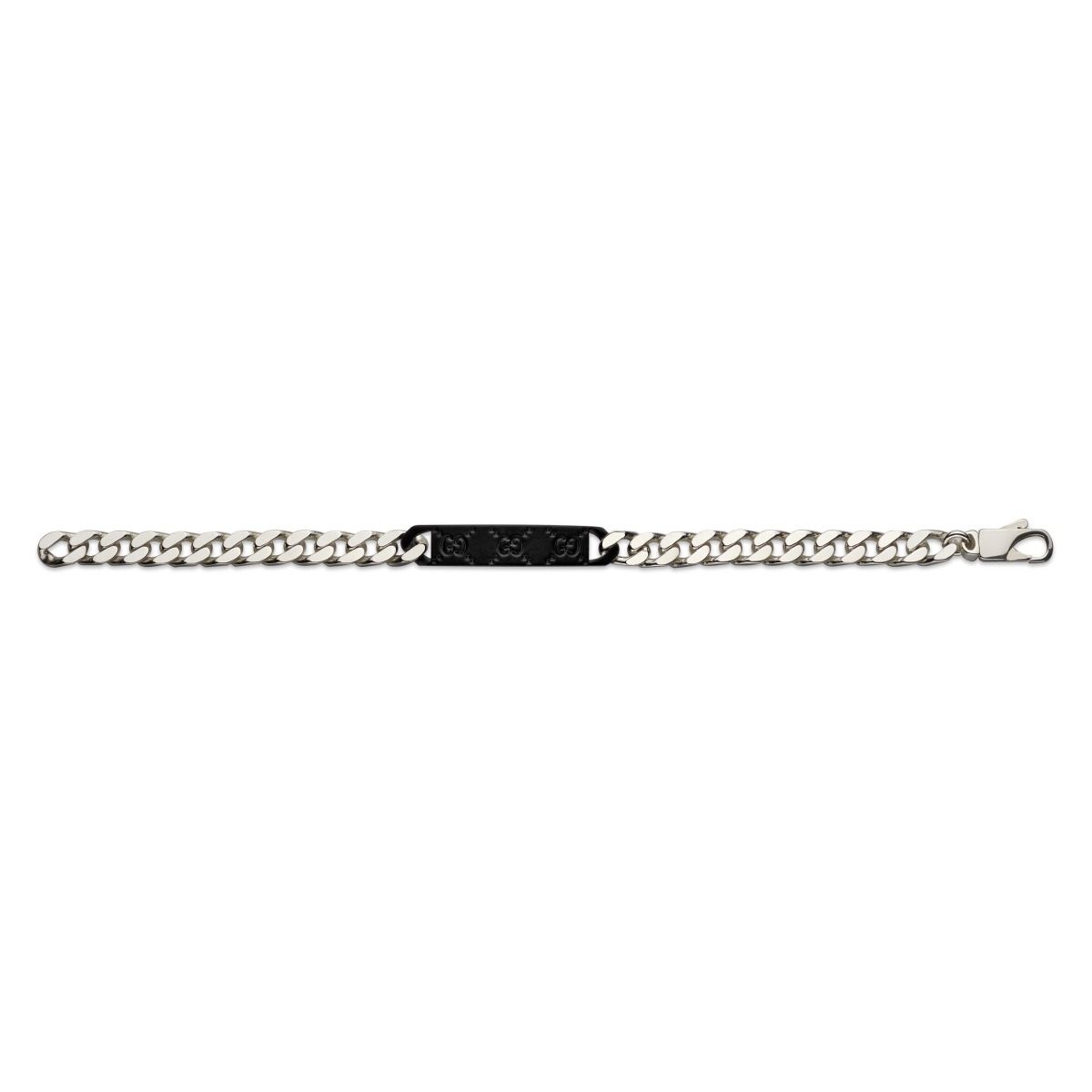 Gucci Tag / bracciale con targhetta GG / argento e pelle effetto gomma