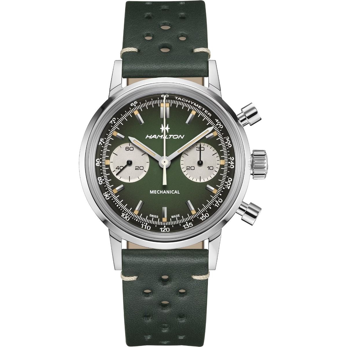Hamilton American Classic Intra Matic Chronograph / orologio uomo / quadrante verde / cassa acciaio / cinturino pelle verde