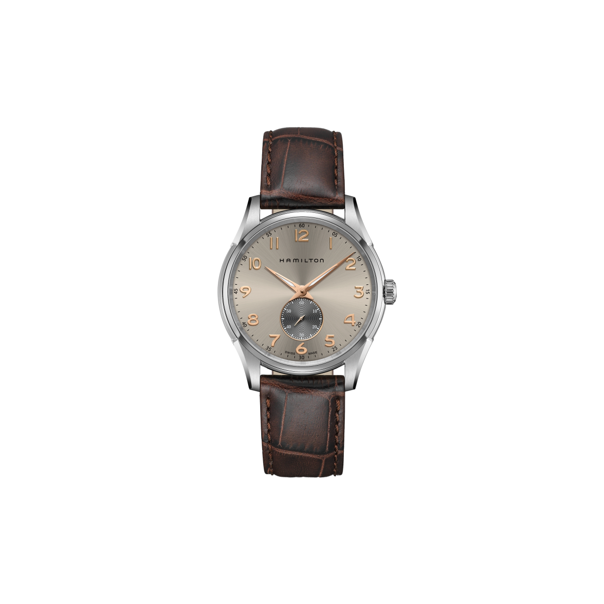 Hamilton Jazzmaster Thinline Small Second / orologio uomo / quadrante champagne / cassa acciaio / cinturino pelle marrone