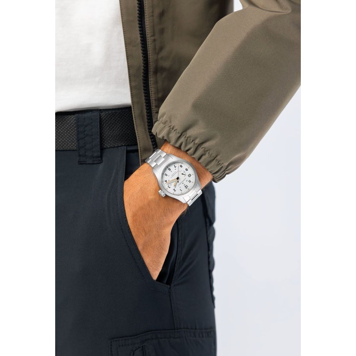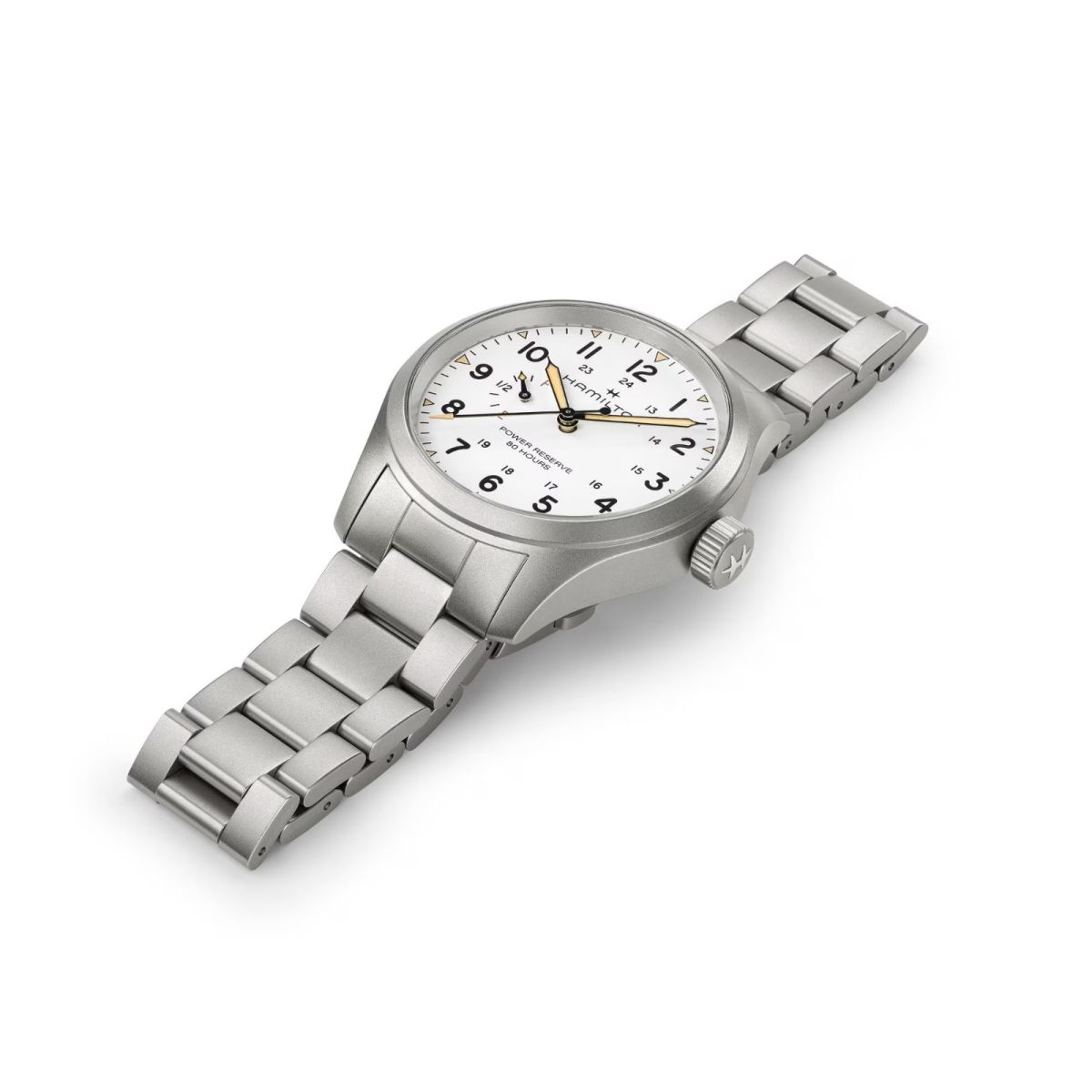 Hamilton Khaki Field Mechanical Power Reserve - 40 mm / orologio uomo / quadrante bianco / cassa e bracciale acciaio