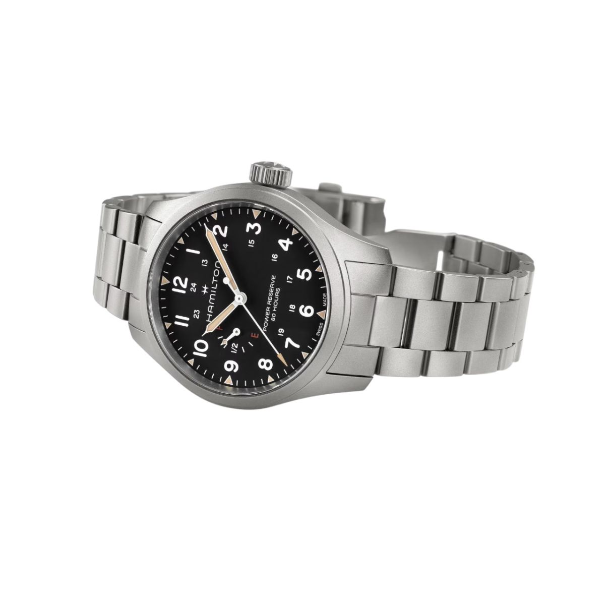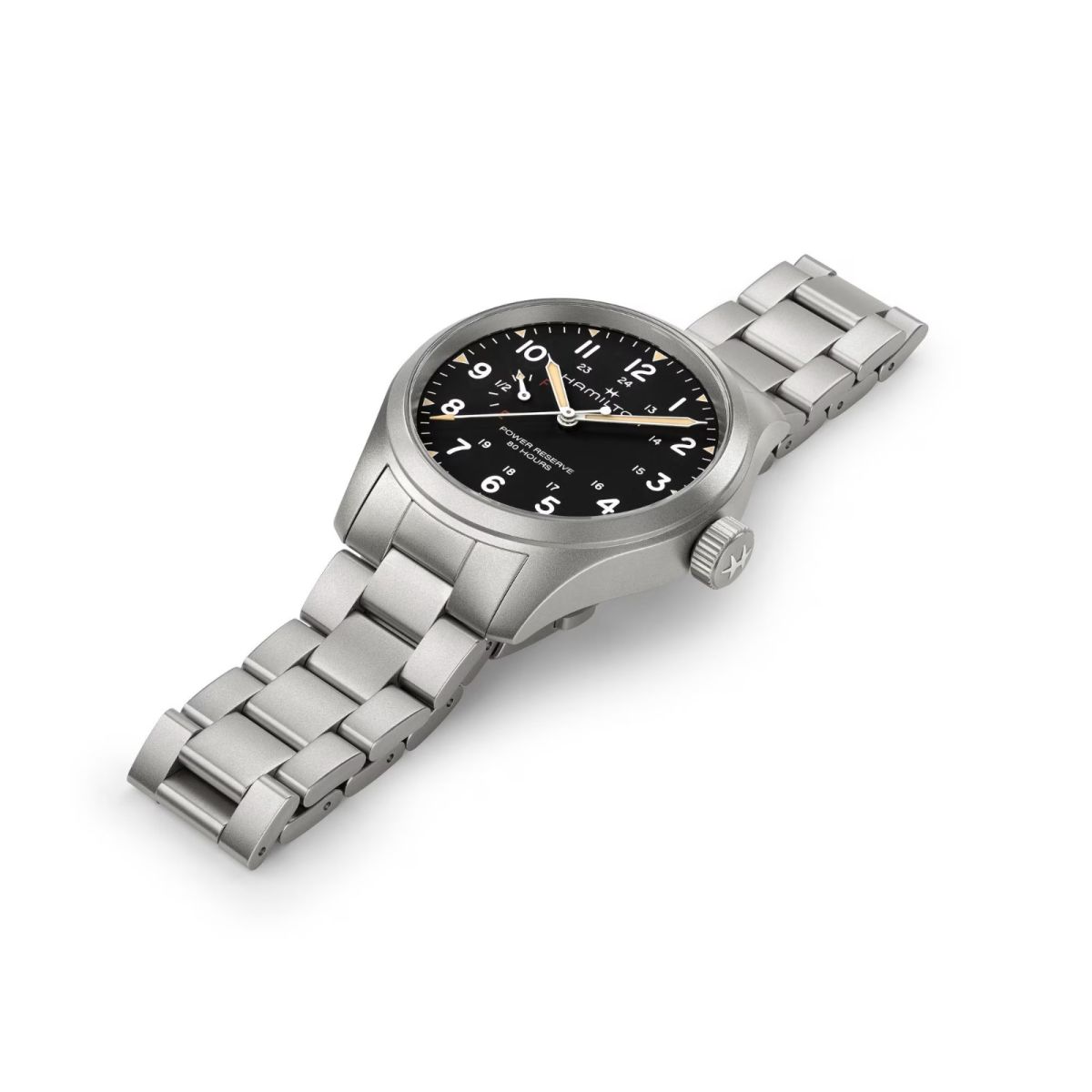 Hamilton Khaki Field Mechanical Power Reserve - 40 mm / orologio uomo / quadrante nero / cassa e bracciale acciaio