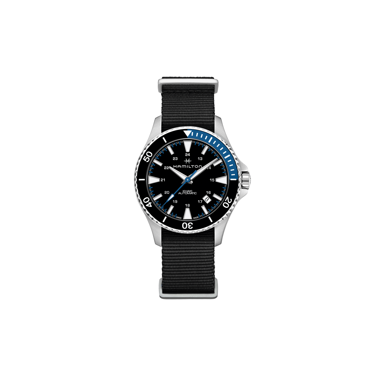 Hamilton Khaki Navy Scuba Auto / orologio uomo / quadrante nero / cassa acciaio / cinturino NATO nero