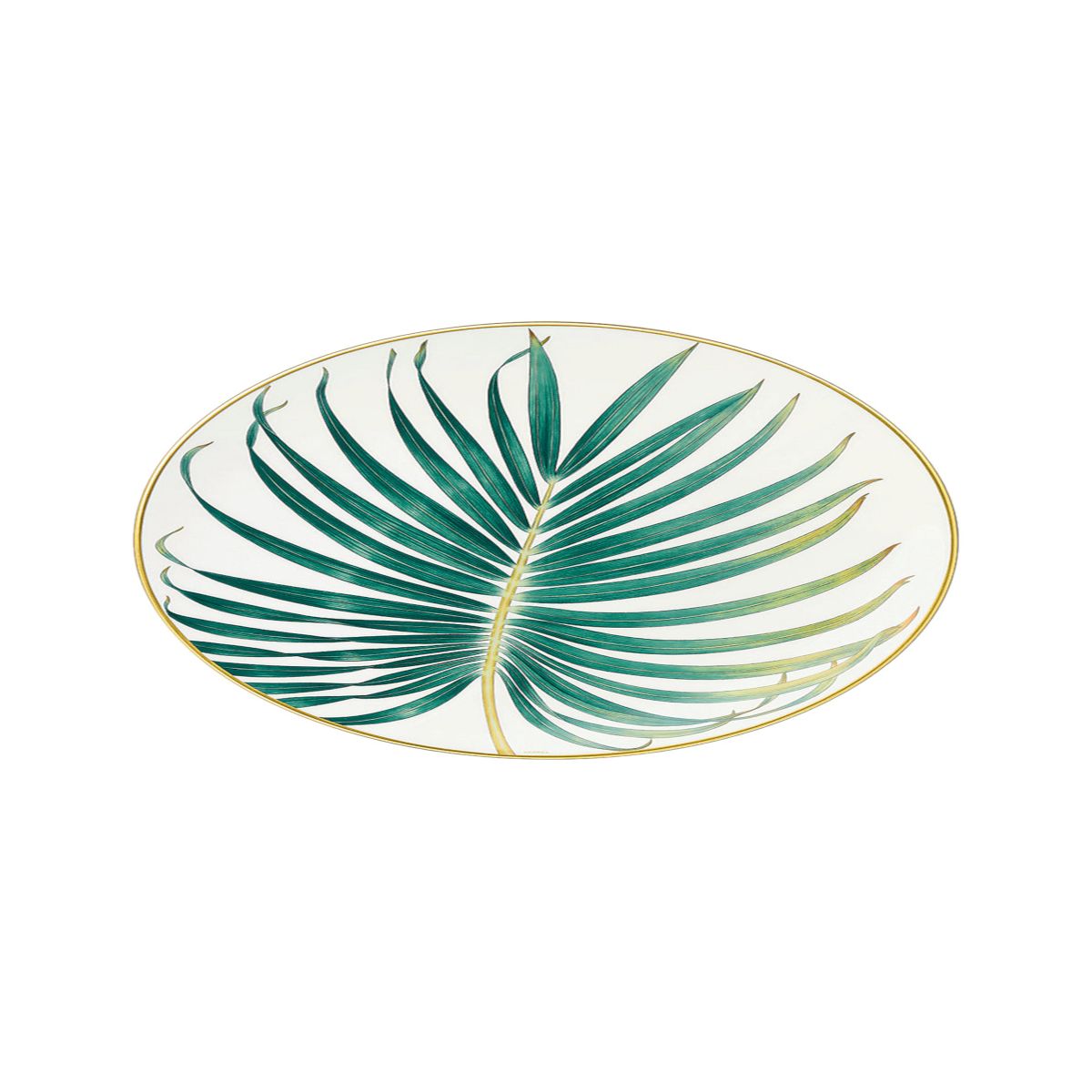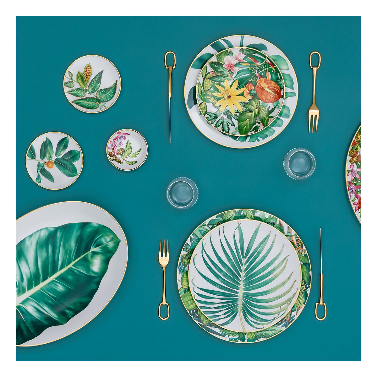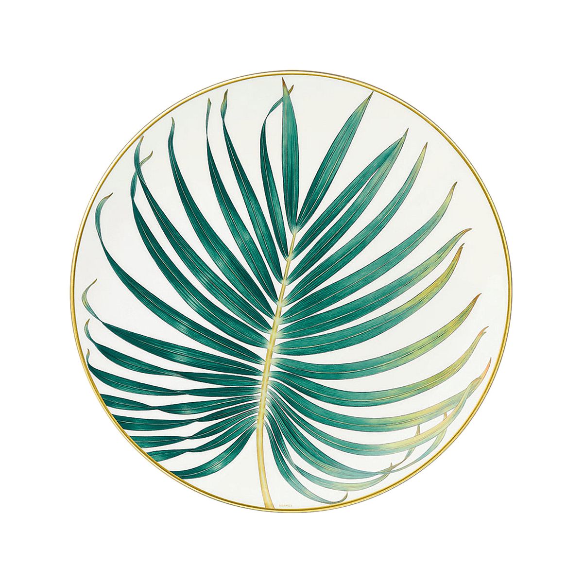 Hermès / Passifolia / Set 2 piatti piani N° 2, palma / porcellana / bianco, verde, oro