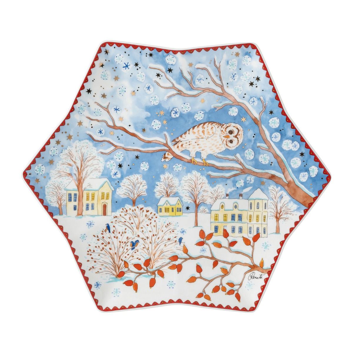 Con la nuova edizione da collezione 2022 "Regali di Natale", Hutschenreuther presenta una vera favola invernale su porcellana di alta qualità. La famiglia e gli amici festeggiano felici e si scambiano regali. Le illustrazioni disegnate a mano dalla penna di Renáta sono state adattate e implementate in ogni dettaglio per ogni articolo. Bordi decorativi elaborati e rifiniti in oro e stelle dorate rendono ogni pezzo speciale.