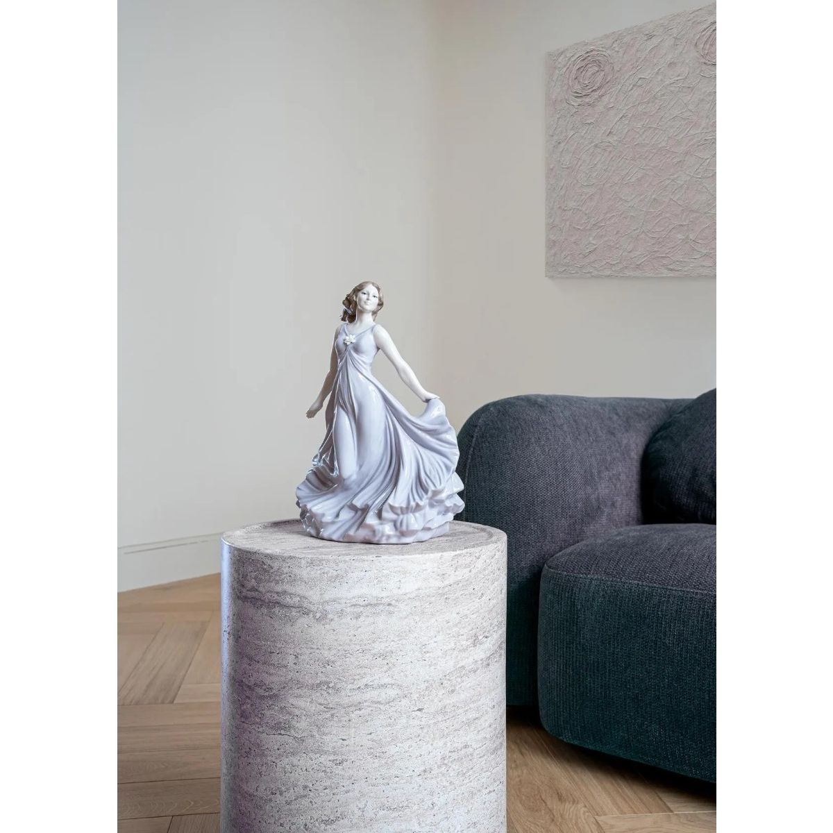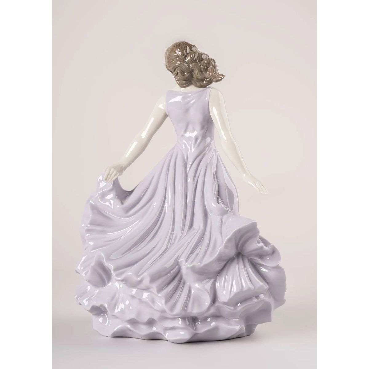 Scultura in porcellana raffigurante una donna che sembra danzare con il vento.