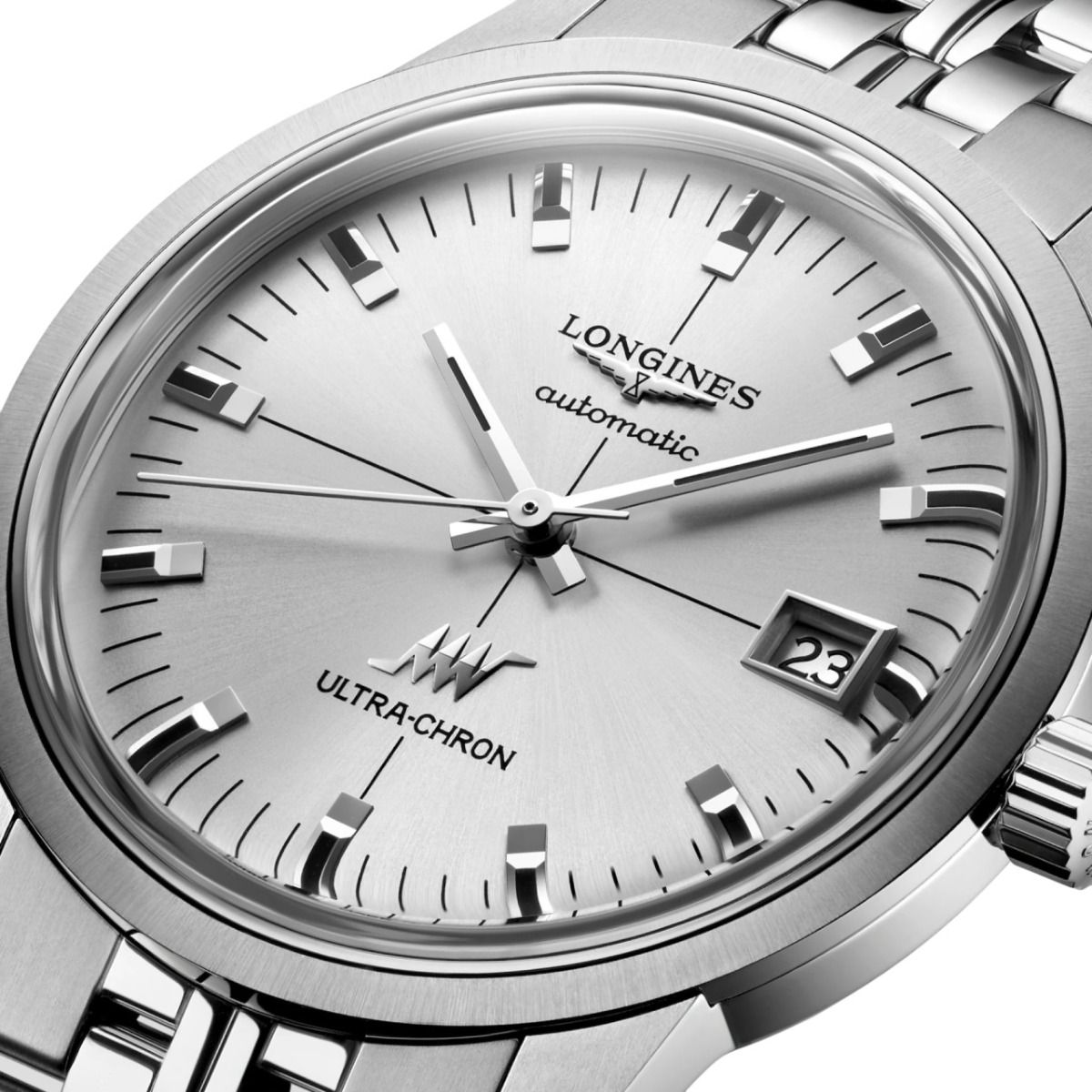 L'orologio Longines Ultra-Chron Classic è caratterizzato dal movimento meccanico a carica automatica con frequenza di 36'000 alternanze orarie e riserva di carica di circa 52 ore, con bilanciere-spirale in silicio monocristallino. Il quadrante argentato, a raggi di sole, protetto da vetro zaffiro antigraffio con trattamento antiriflesso multistrato su entrambi i lati, è ospitato dalla cassa in acciaio inossidabile da 37 mm di diametro impermeabile fino a 5 bar. Il bracciale è realizzato anch'esso in acciaio inossidabile, con doppia chiusura deployante di sicurezza dotata di sistema di microregolazione.