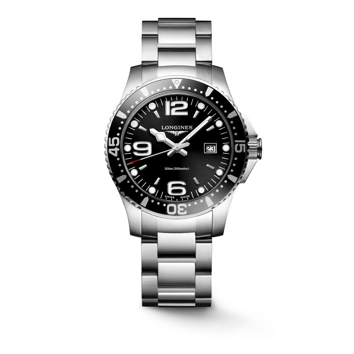 Il celebre marchio orologiero svizzero Longines, con sede a Saint-Imier dal 1832, vanta una lunga tradizione caratterizzata dall’eleganza dei suoi prodotti e delle loro prestazioni. Gli stessi valori sono stati ripresi dalla The Longines Sport Collection, all’interno della quale trova spazio la linea HydroConquest, pensata per chi è alla ricerca di un orologio tecnico ed elegante insieme. Oggi, Longines arricchisce questa collezione con nuovi modelli che celebrano i colori. L’orologio HydroConquest è dotato di un movimento al quarzo con dispositivo End of Life. La cassa in acciaio inossidabile è caratterizzata dal fondello avvitato, dalla corona a vite e dalla lunetta girevole unidirezionale. Sul quadrante nero a raggi di sole sono presenti indici, numeri arabi e lancette argentati lucidi rivestiti da Super-LumiNova, un materiale che consente la lettura dell’ora anche al buio, ed il datario a ore 3.