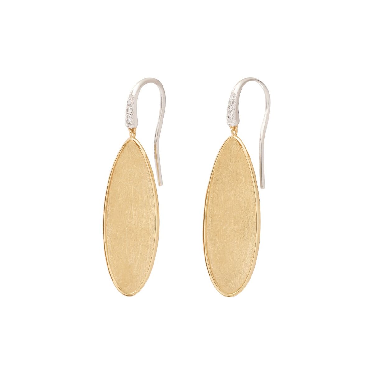 Marco Bicego / Lunaria Twist / orecchini pendenti 4 cm con amo / oro giallo, oro bianco e diamanti