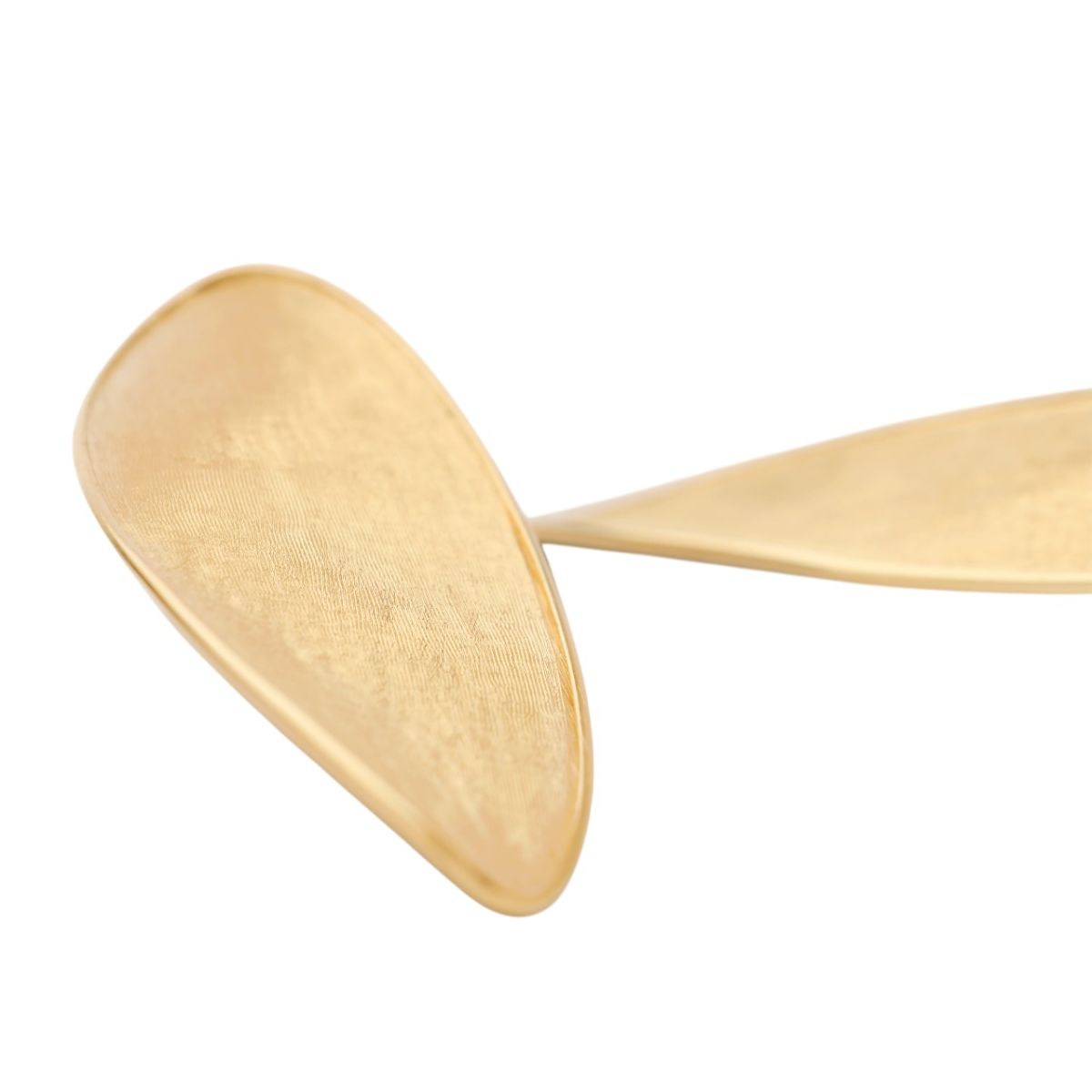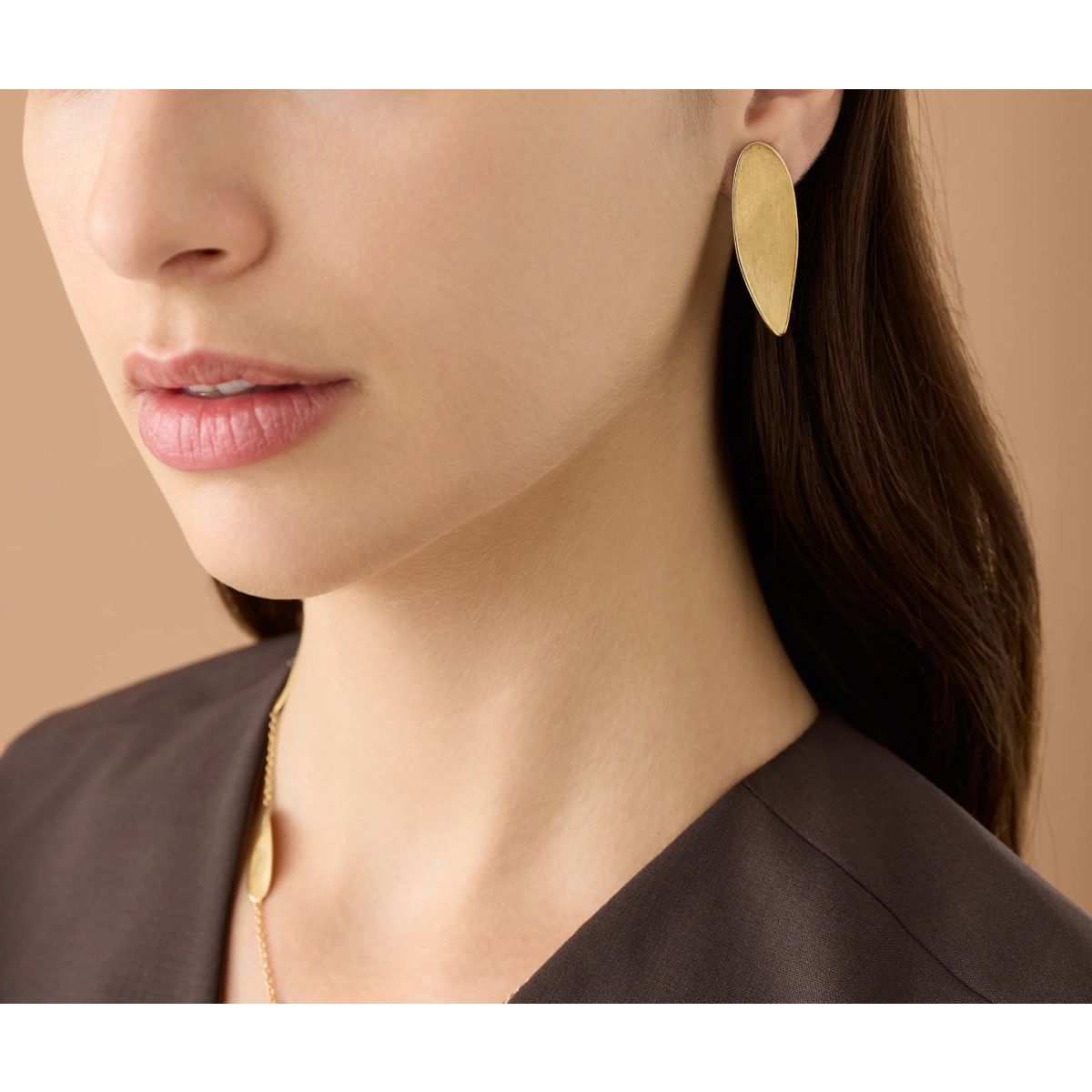 L'iconico motivo a foglia rivisitato con un tocco raffinato. Questi grandi orecchini a bottone in oro giallo 18 carati presentano una caratteristica forma a foglia allungata, delicatamente attorcigliata per creare una silhouette scultorea. Finemente incisi a mano secondo l'antica tecnica fiorentina, questi orecchini sono il pezzo perfetto per completare qualsiasi look con un tocco audace.