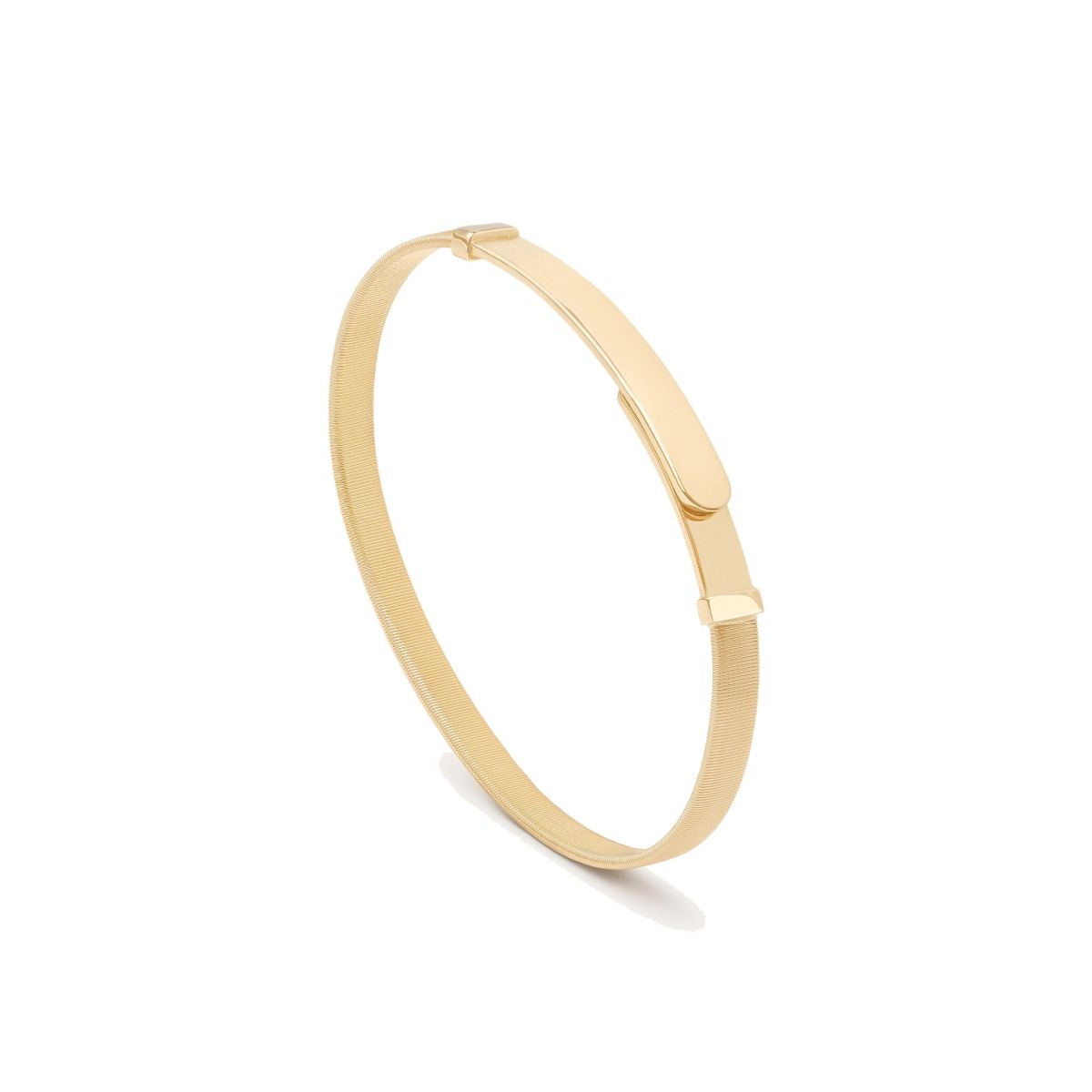 Dallo stile pulito ed elegante, questo bracciale rigido in oro giallo 18 carati è realizzato grazie all’esclusiva lavorazione artigianale del coil. Perfetto da solo e splendido abbinato agli altri bracciali della collezione, è facile da indossare e togliere grazie alla chiusura integrata abilmente nascosta sotto il motivo centrale.