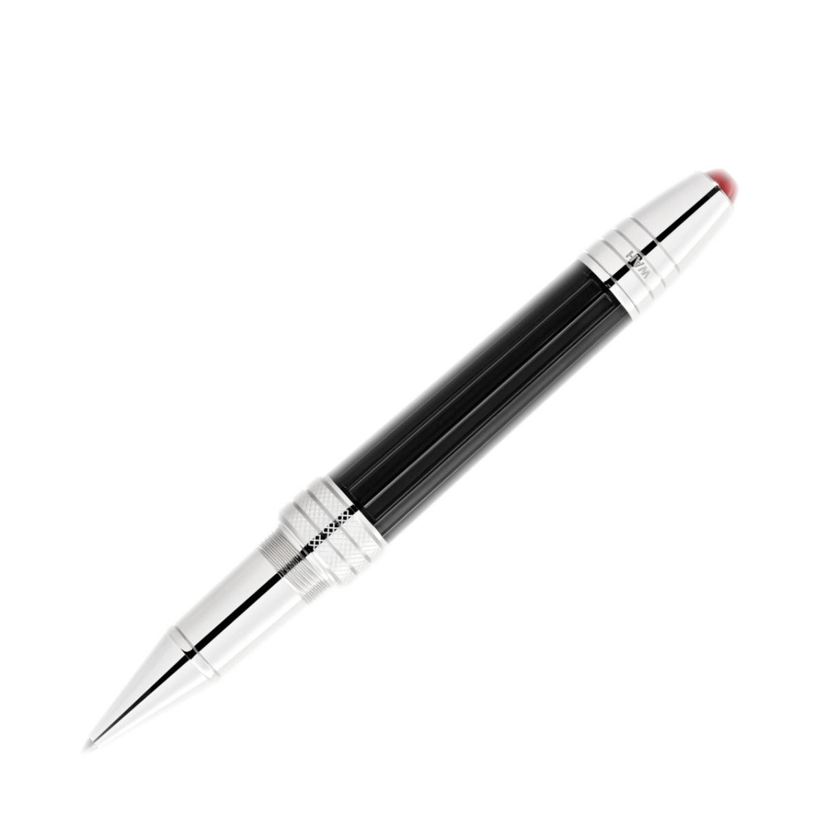 Nel 2022, Montblanc rende omaggio a uno dei musicisti più celebri del XX secolo, universalmente considerato uno dei chitarristi elettrici più importanti nella storia della musica popolare: Jimi Hendrix. In pregiata resina, il colore bianco sporco del cappuccio e il suo motivo inciso si ispirano a una delle tracolle delle chitarre indossate da Hendrix, mentre il corpo nero è impreziosito da un elegante motivo che ricorda un pedale WAH. La forma della clip finitura platino ricorda la leva del vibrato di una chitarra elettrica. L’emblema Montblanc sulla parte superiore del cappuccio è in pregiata resina. Un altro dettaglio sorprendente è l’anello del corpo finitura platino che trae ispirazione dal cavo di una chitarra degli anni ‘60, con incisa la data di un celebre concerto di Jimi Hendrix.