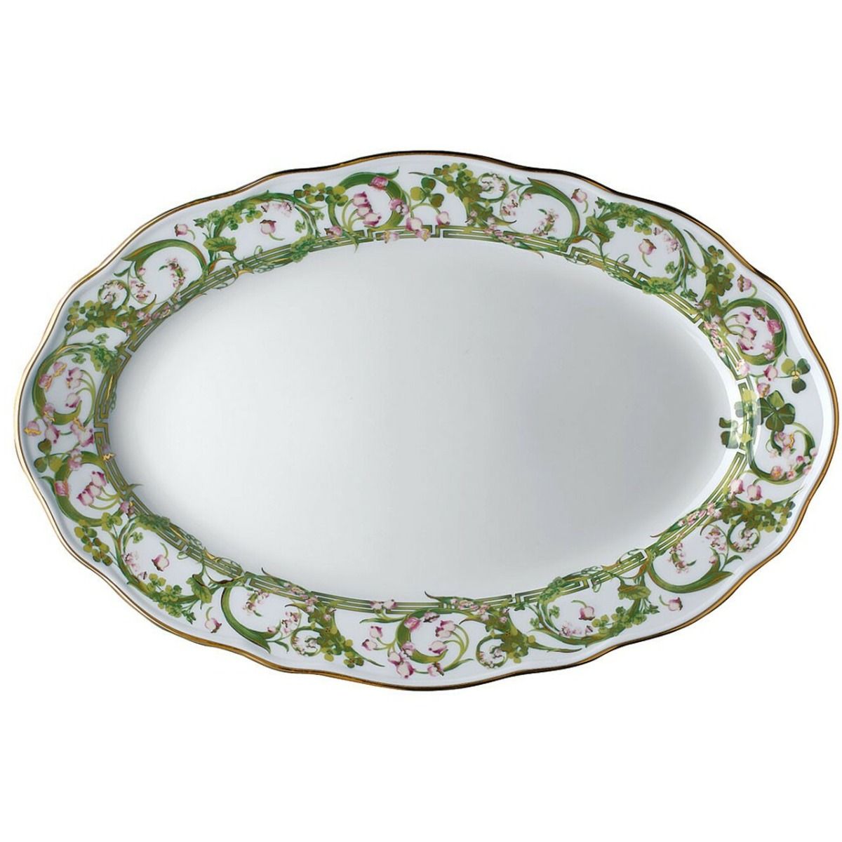 Rosenthal – Versace / Flower Fantasy / piatto ovale 38 cm / porcellana / bianco, verde, rosso, viola, giallo, oro