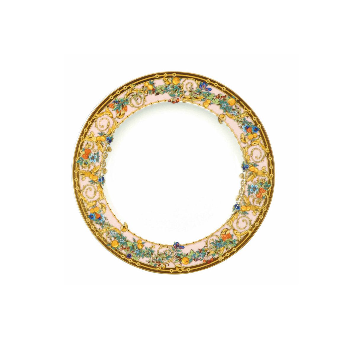 Rosenthal – Versace / Le Jardin de Versace / piatto piano 22 cm / porcellana / bianco, rosa, celeste, giallo, rosso, arancio
