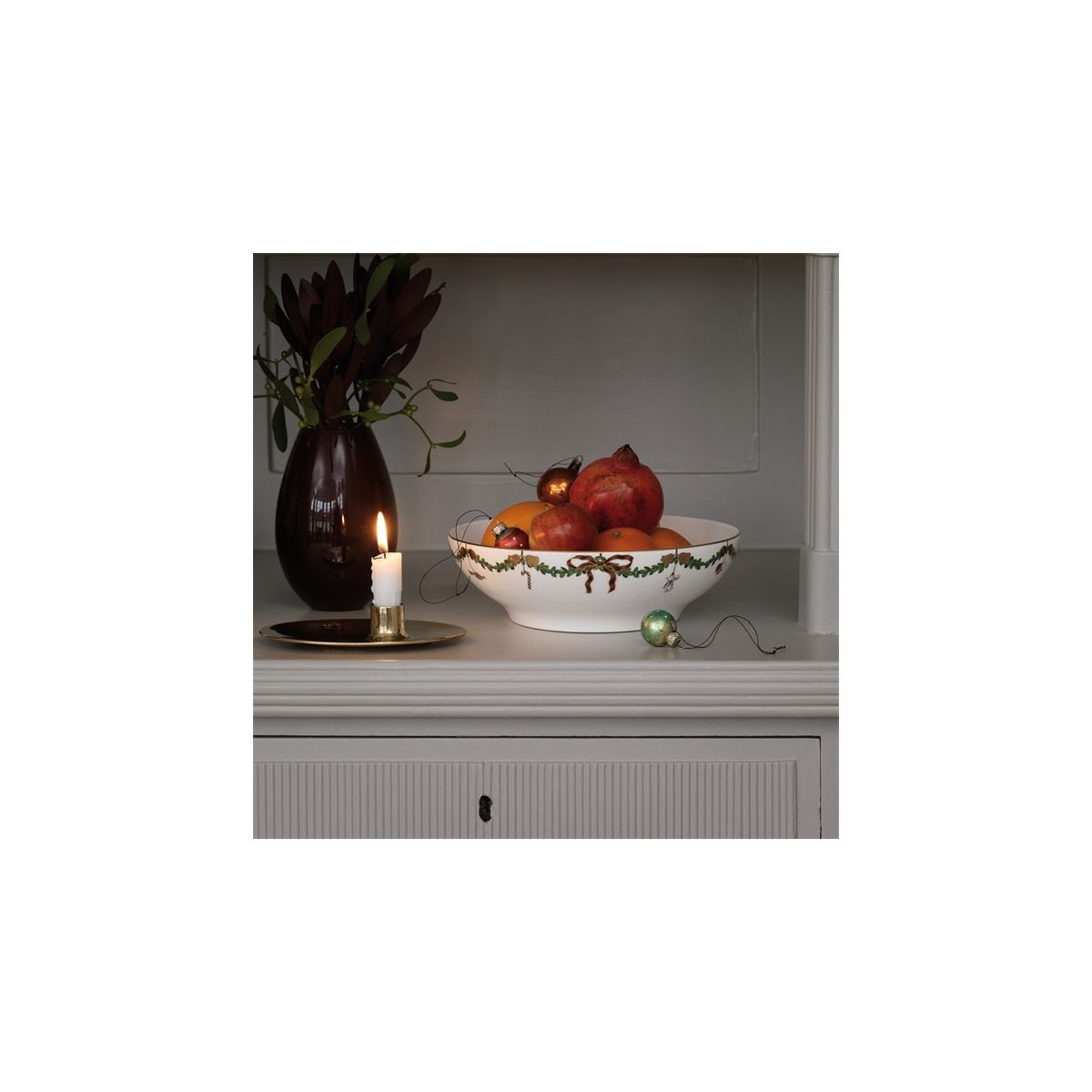 Decorata con un'elegante ghirlanda di abete rosso e decorazioni con dettagli dorati, questa ciotola natalizia Star Fluted è una splendida aggiunta alla tavola. La ciotola da 220 cl ha un delicato bordo dorato ed è ideale per i contorni sulla tavola delle feste. Niente racchiude lo spirito delle feste come riunirsi a tavola per momenti di gioia e convivialità. È qui che l'amato servizio da tavola natalizio di Royal Copenhagen ha preso vita ed è diventato parte di molte tradizioni natalizie. Le festose ghirlande di abete rosso che bordano piatti, ciotole e tazze sono impreziosite da fiocchi di seta e decorazioni natalizie, creando un servizio ricco ed elegante, che è lo sfondo perfetto per tutti i vostri gioiosi pasti delle feste.