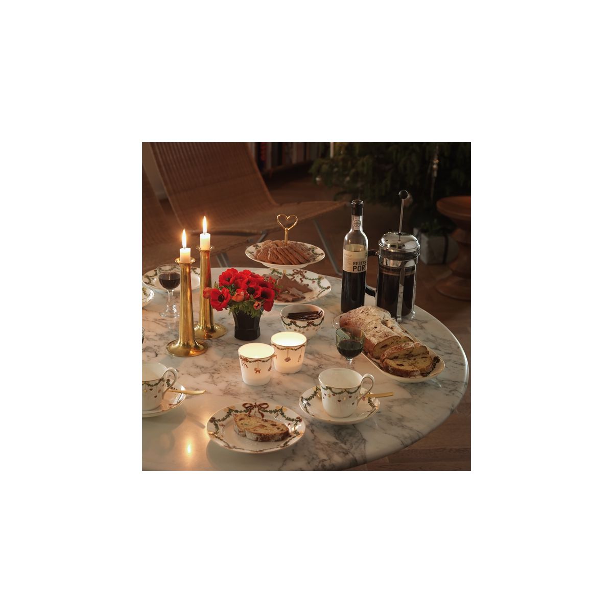 Il piatto natalizio Star Fluted con bordo dorato è decorato con una ghirlanda di abete rosso, decorata con splendidi fiocchi rossi e decorazioni di ogni forma e dimensione. Il piatto da 39 cm è perfetto per un classico ceppo di Natale e altri dolci natalizi. Niente incarna lo spirito delle feste come riunirsi a tavola per momenti di gioia e convivialità. È qui che l'amato servizio da tavola natalizio di Royal Copenhagen ha preso vita ed è diventato parte di molte tradizioni natalizie. Le festose ghirlande di abete che bordano piatti, ciotole e tazze sono impreziosite da fiocchi di seta e decorazioni natalizie, creando un servizio ricco ed elegante, che rappresenta lo sfondo perfetto per tutti i vostri gioiosi pasti natalizi.
