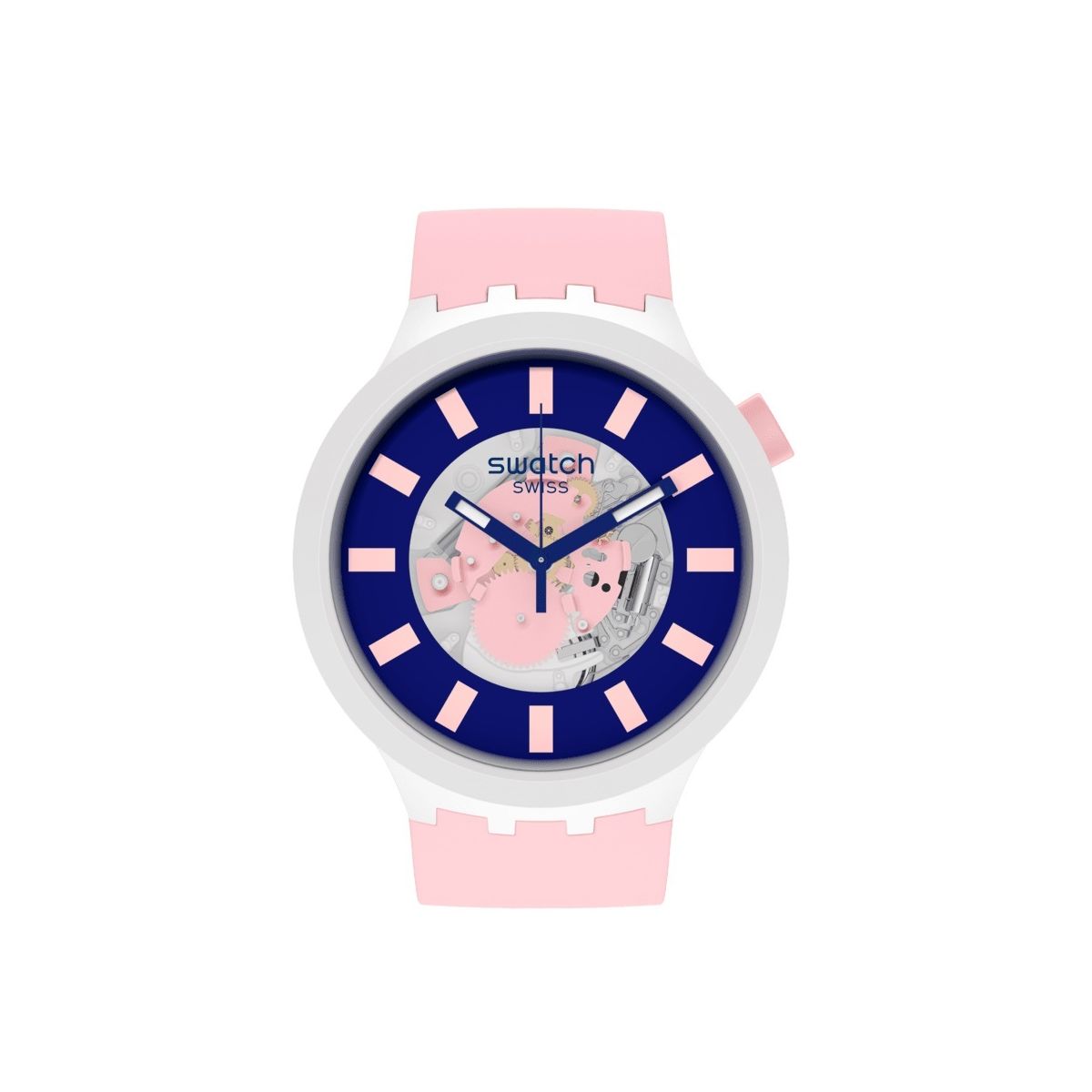 Swatch / Big Bold / Bioceramic – Diversipink / orologio unisex / quadrante scheletrato blu / cassa plastica / cinturino plastica