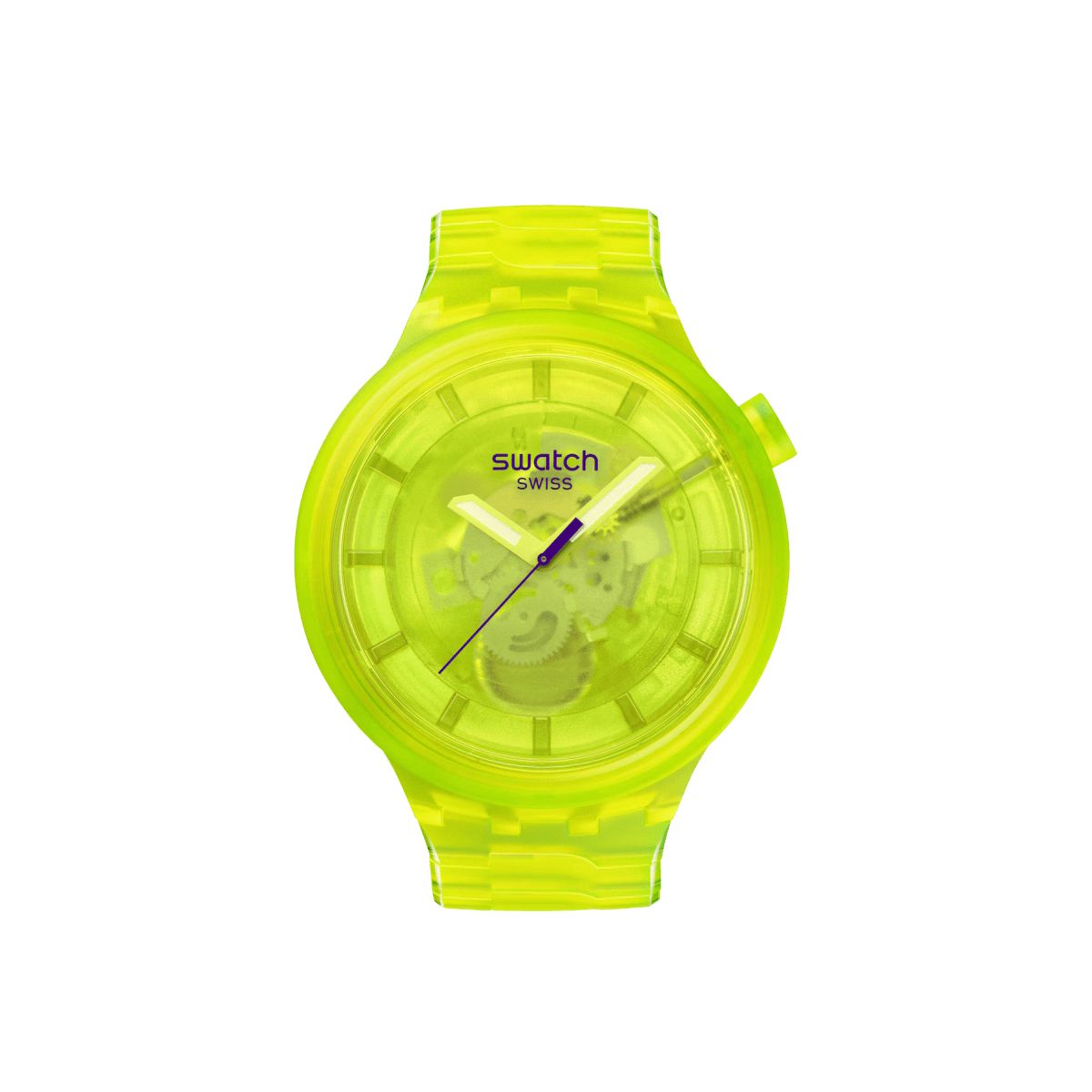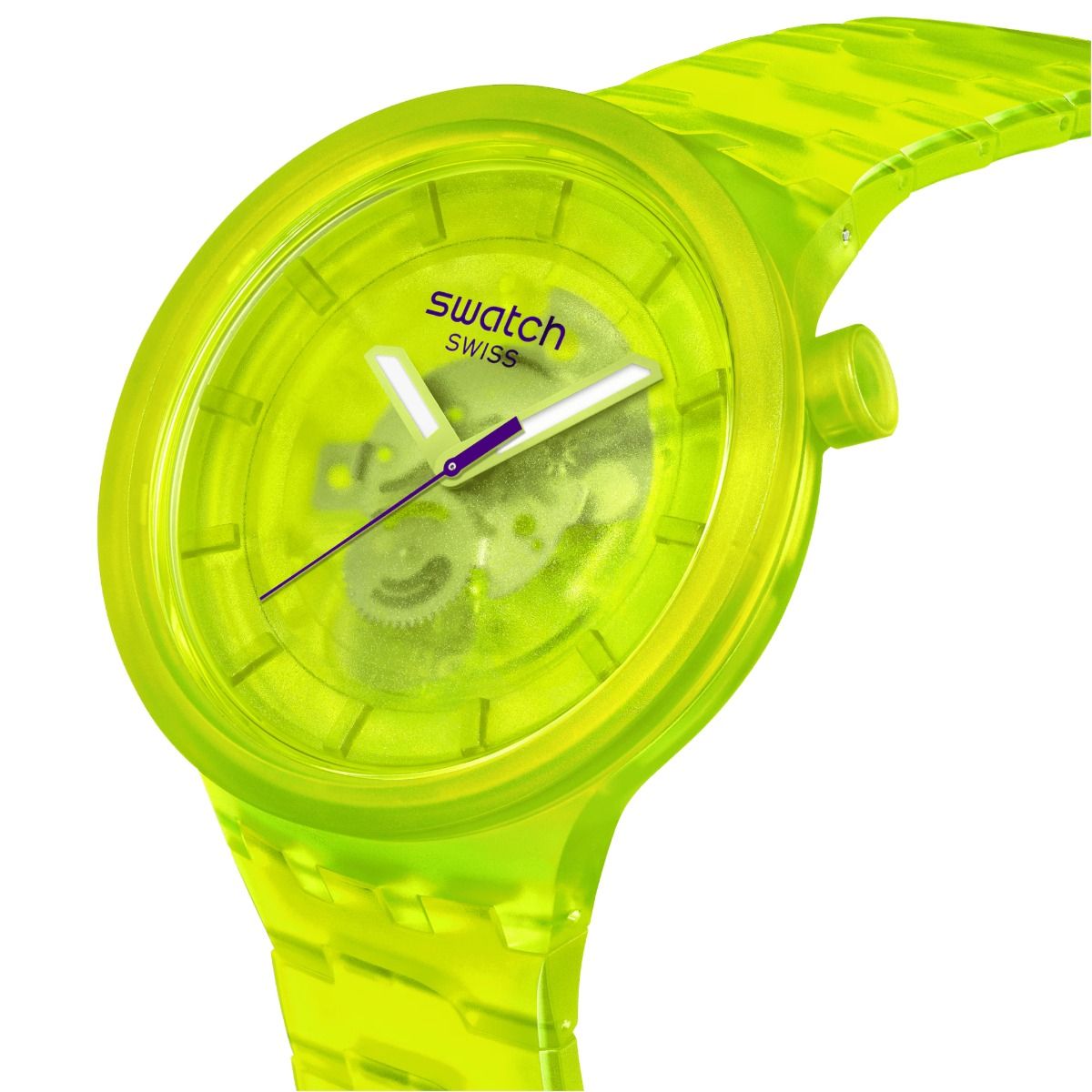 L'orologio oversize YELLOW JOY (SB05J103) presenta un look trasparente in ogni elemento. Dalla cassa al quadrante, dalla lunetta al bracciale, tutte le parti sono di origine biologica. Il quadrante giallo trasparente biosourced permette di ammirare il movimento, mentre le lancette gialle fosforescenti di ore e minuti e la lancetta dei secondi viola a contrasto indicano l'ora sotto un vetro di origine biologica.