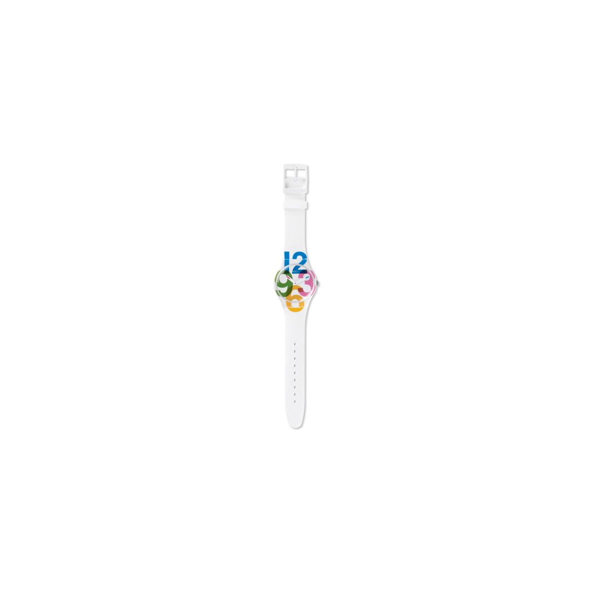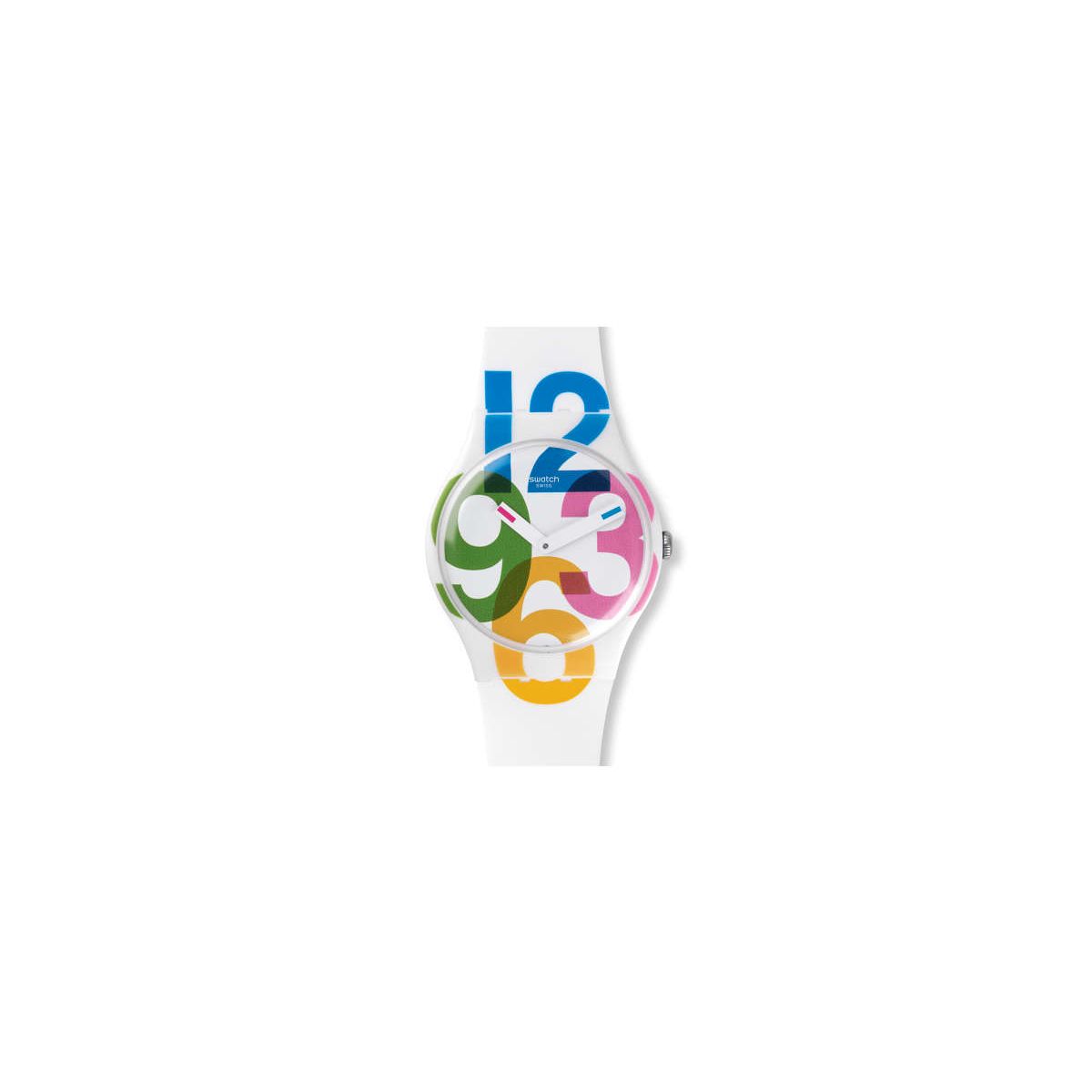 I numeri non mentono. L'orologio CLOCKWISE (SUOW117) mette al centro dell'attenzione dei coloratissimi numeri oversize che risaltano sullo sfondo total white del quadrante, della cassa in plastica e del cinturino in silicone. Anche le lancette sono bianche, con una punta colorata che aiuta a leggere l'ora.