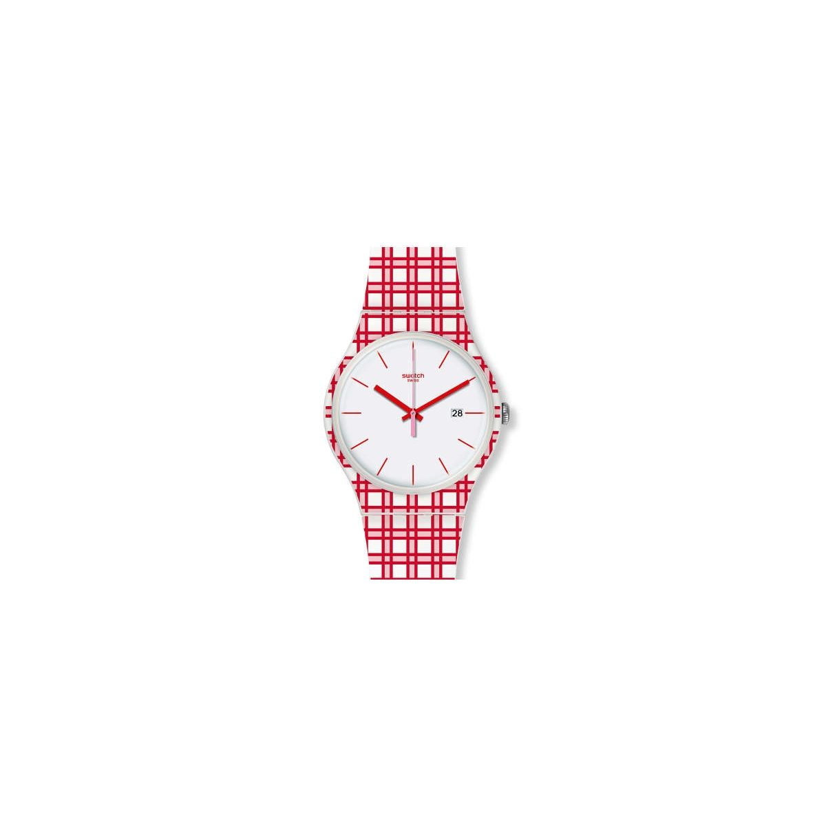 La perfezione del picnic, il modello a quadretti PIKNIK (SUOW401) ha un cinturino in silicone bianco con strisce rosse e rosa chiaro sovrapposte. Il motivo classico del picnic viene ripreso anche sulla cassa in plastica.