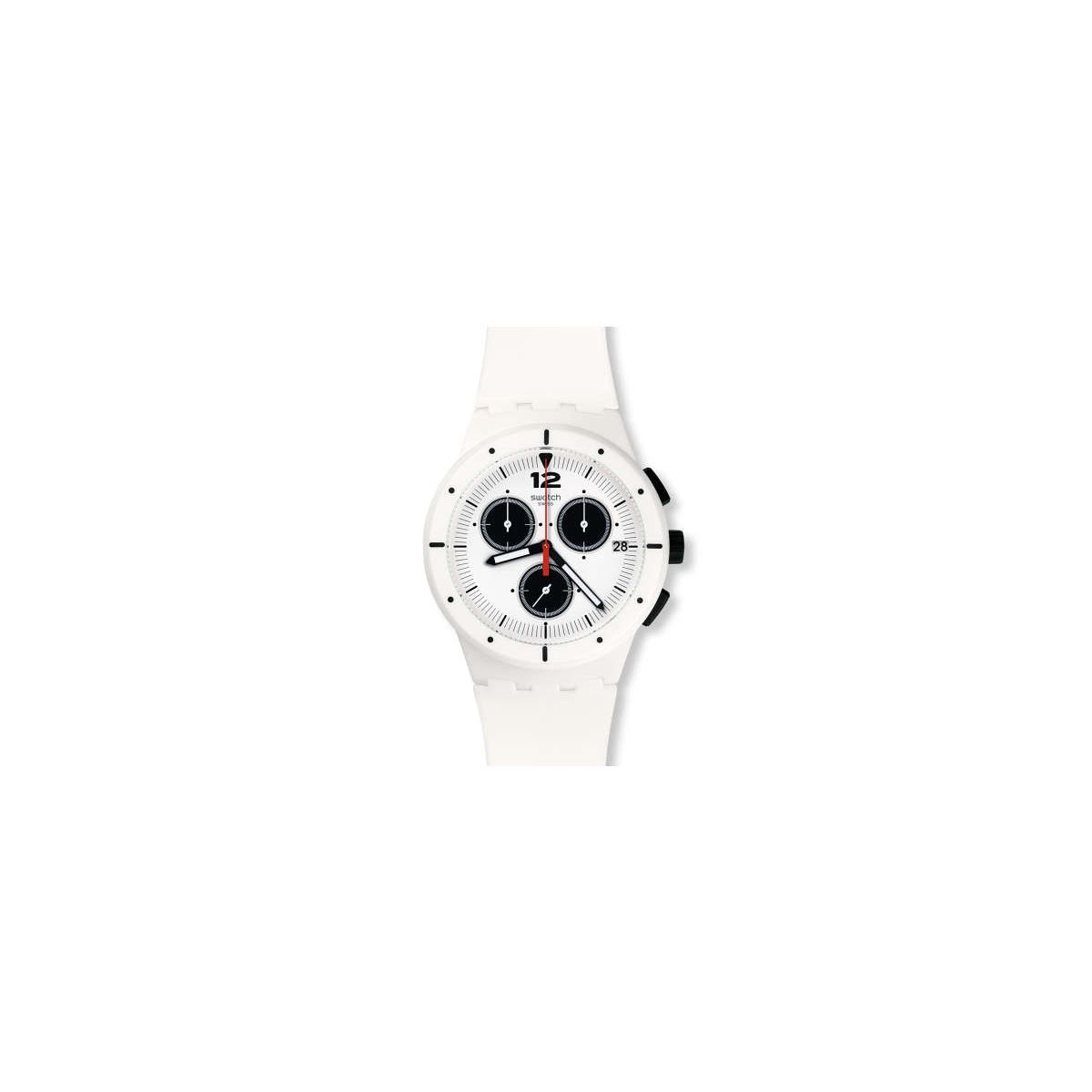 Swatch / Originals Chrono / Why Again / orologio unisex / quadrante bianco / cassa plastica / cinturino silicone
