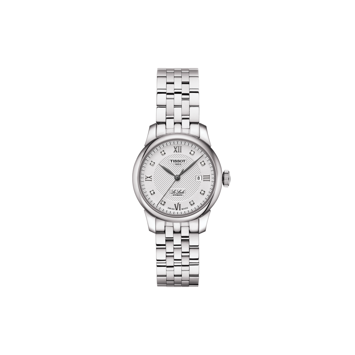 L’orologio Tissot Le Locle Automatic Lady è dotato di un movimento automatico. La cassa in acciaio è caratterizzata dal fondello trasparente attraverso il quale è visibile il movimento. Il quadrante argentato presenta le lancette argentate e gli indici diamantati o a numeri romani, con la finestrella del datario a ore 3.