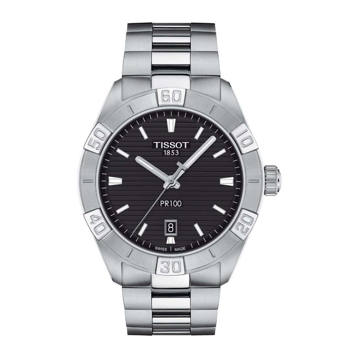Tissot PR100 Sport Gent / orologio uomo / quadrante nero / cassa e bracciale acciaio