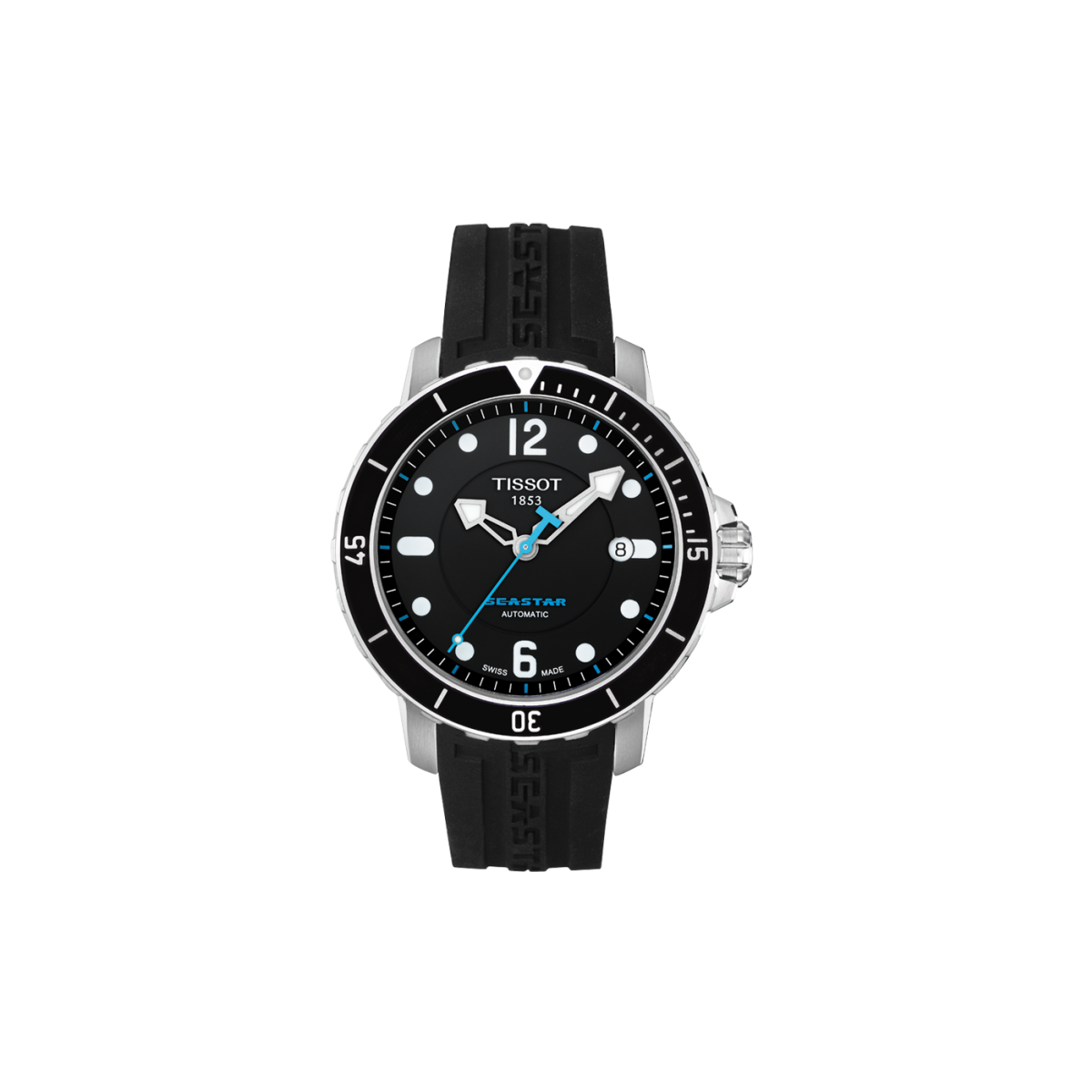 L’orologio Tissot Seastar 1000 è dotato di un movimento automatico ETA Swiss-made. La cassa in acciaio è caratterizzata dalla lunetta girevole unidirezionale, dalla corona e dal fondello a vite. Il quadrante nero presenta gli indici e le lancette rivestiti da Super-Luminova. Il datario è posizionato ad ore 3.