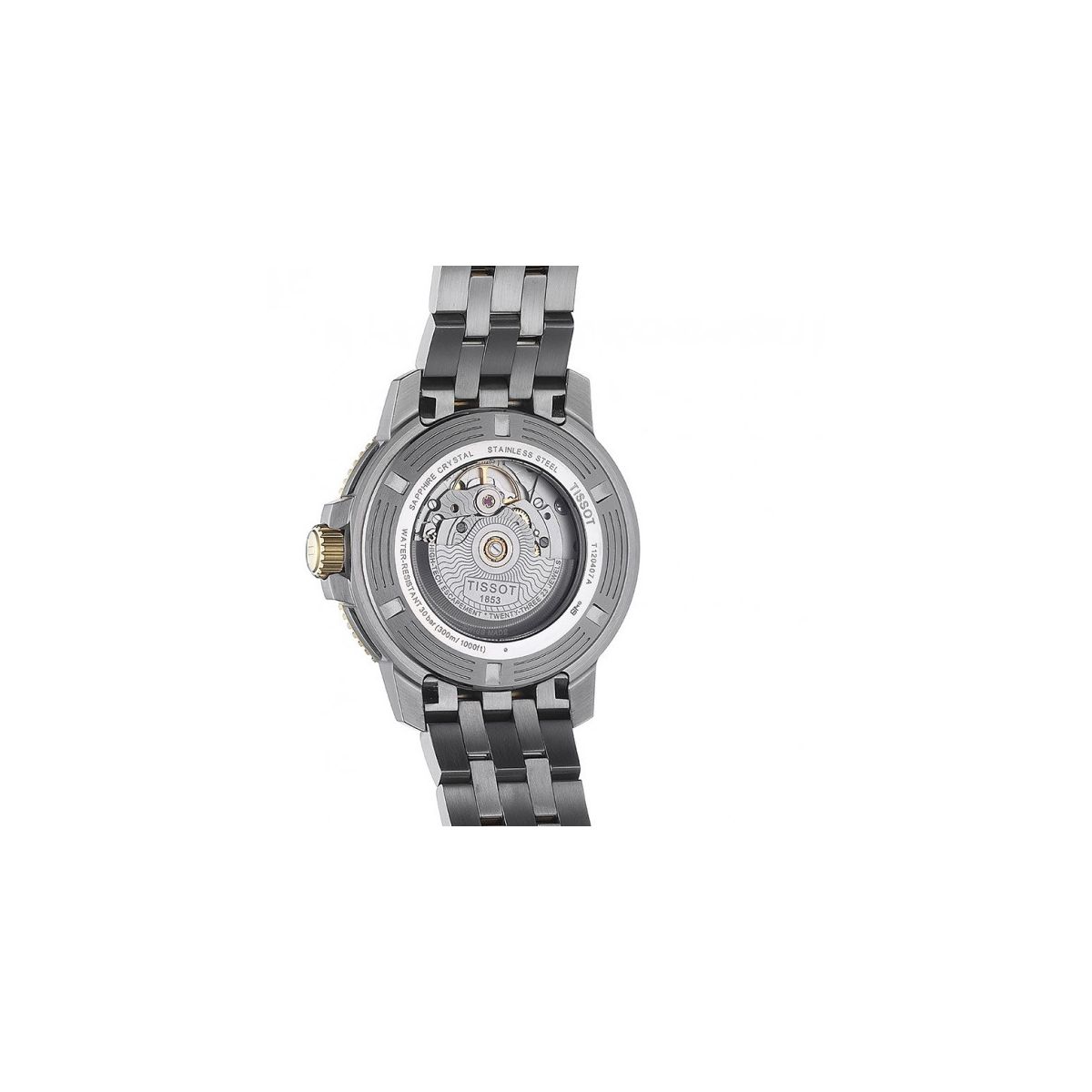 Tissot Seastar 1000 Powermatic 80 / orologio uomo / quadrante nero / cassa e bracciale acciaio e PVD dorato