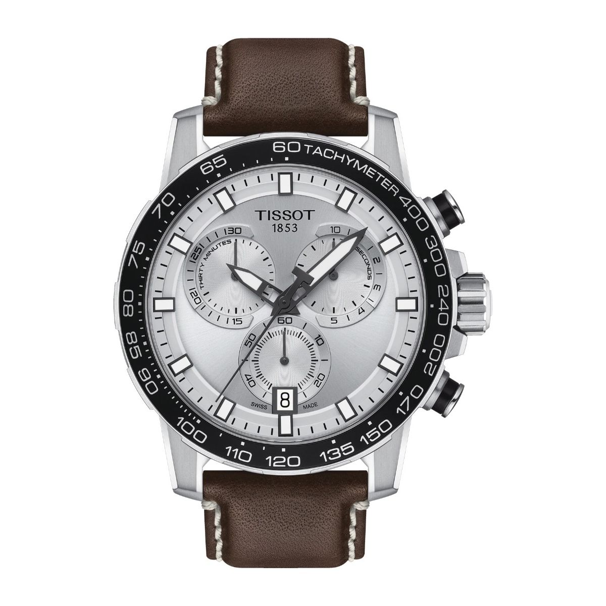 Tissot Supersport Chrono / orologio uomo / quadrante argentato / cassa acciaio / cinturino pelle marrone
