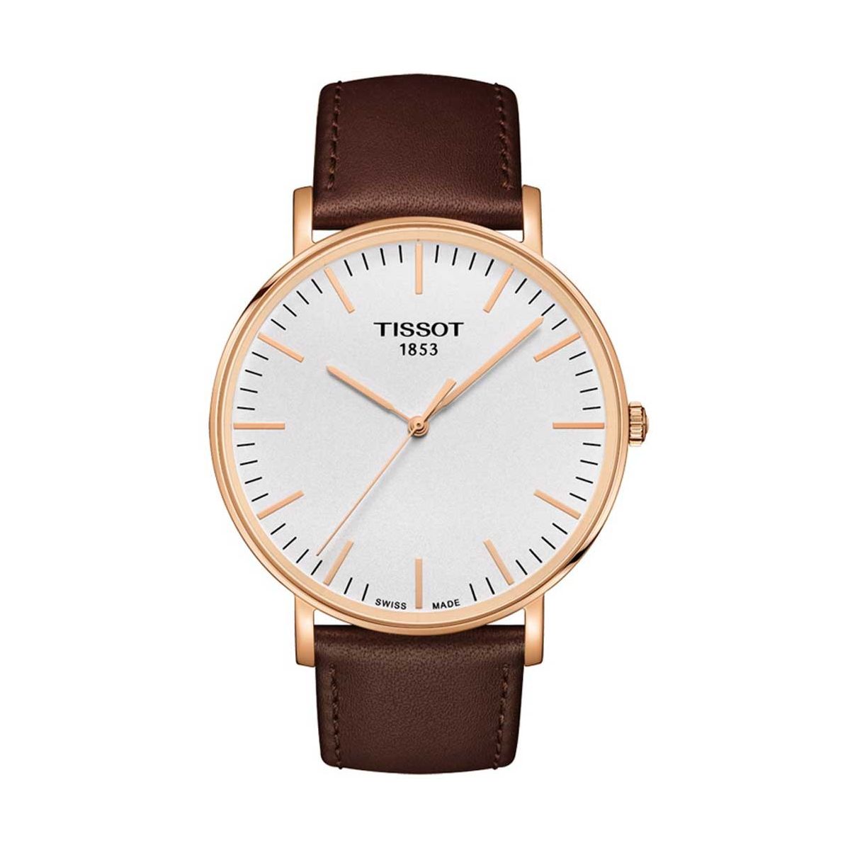 Tissot Everytime Large / orologio uomo / quadrante argentato / cassa acciaio e PVD rosato / cinturino pelle marrone