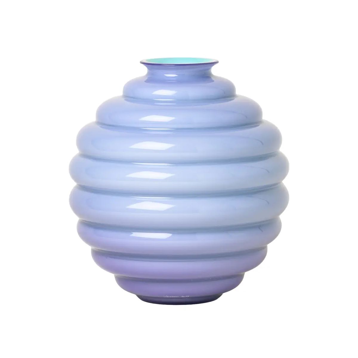 Il vaso Dèco, disegnato da Napoleone Martinuzzi nel 1930 e realizzato in vetro soffiato e lavorato a mano, è caratterizzato da precise forme geometriche, evidenziate da una decorazione ripetuta. Ritmo: è questa la parola che definisce la forma dei vasi della serie Dèco. Sembrano muoversi come cerchi nell’acqua con onde e riflessi. Un movimento che è una danza. Questa è l’interpretazione dell’esperienza figurativa dello stile Dèco attraverso le tecniche vetrarie di Venini.