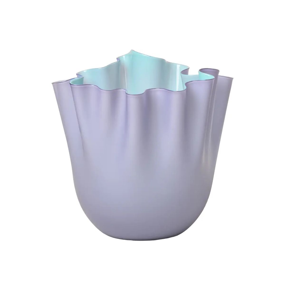Venini / Fazzoletto / vaso / lilla, interno verde menta / vetro opalino soffiato e lavorato a mano