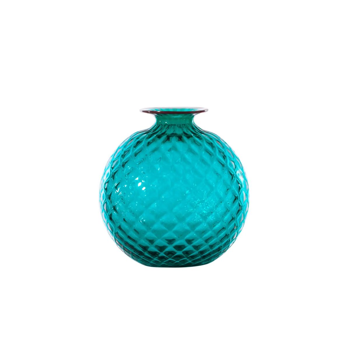 Venini / Monofiore Balloton / vaso / verde paraiba, filo rosso / vetro soffiato lavorato a mano